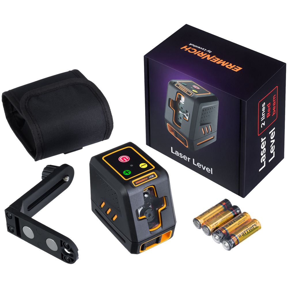 Линейный лазерный уровень Ermenrich LT20 — это универсальный инструмент для строительных, ремонтно-отделочных и ландшафтных работ. Красные лазерные диоды выстраивают две пересекающиеся линии, угол развертки плоскостей — 130 градусов по вертикали и горизонтали.