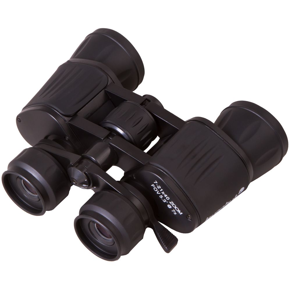 Модель с переменной кратностью: увеличение варьируется от 7x до 21x, поэтому бинокль подходит для изучения объектов на разном расстоянии. Оптическая система с призмами Порро и полное просветляющее покрытие на линзах существенно повышают качество картинки.