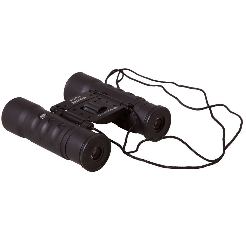Бинокль создан на базе roof-призм, сделанных из стекла BK-7 c многослойным просветлением. Увеличение — 10x, диаметр объективов — 25 мм. Минимальное расстояние фокусировки — 5 м. Бинокль имеет функцию подстройки межзрачкового расстояния и диоптрийной коррекции окуляров. Встроенная система центральной фокусировки позволит быстро настроить резкость.В комплект входит чехол из полиэстера.