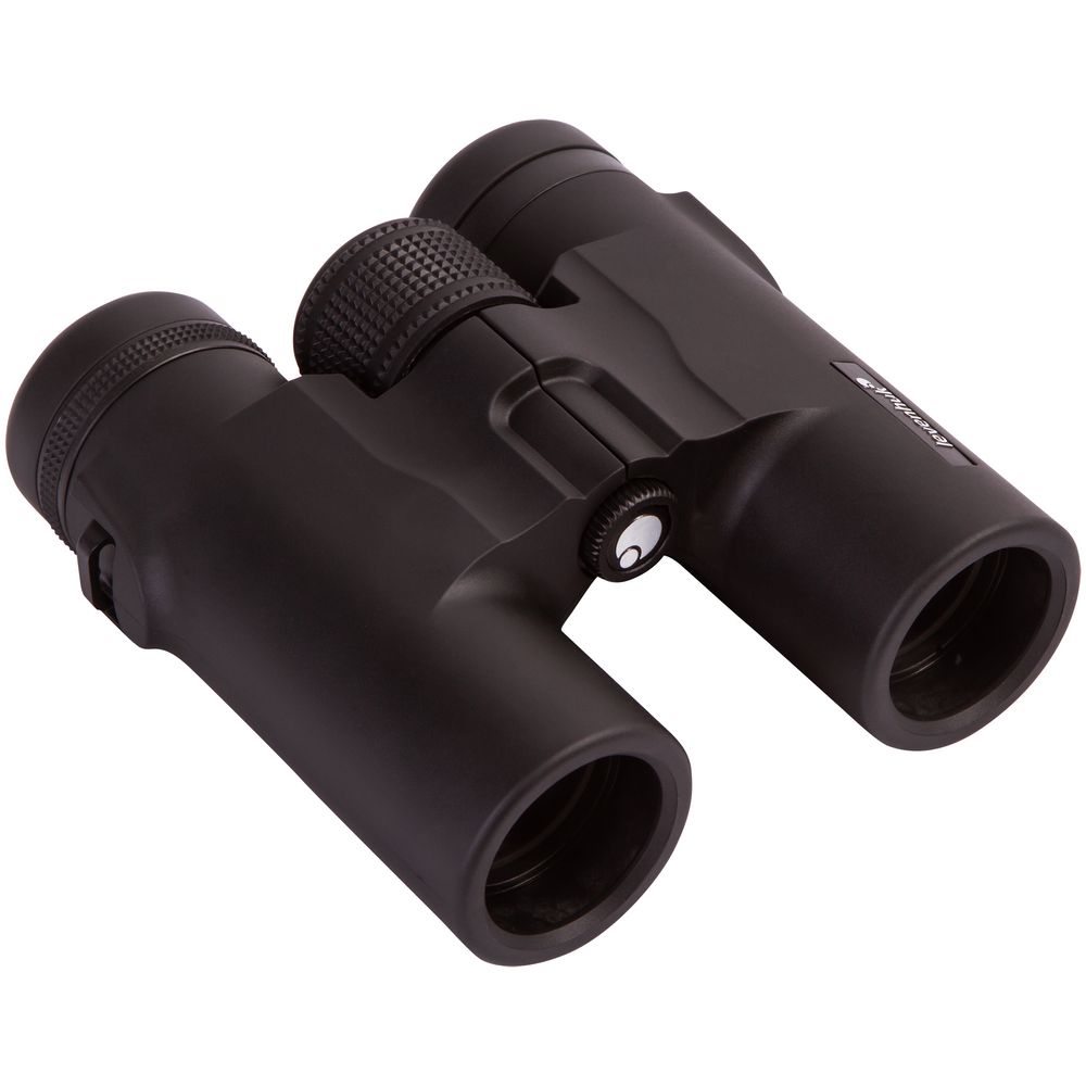 Бинокль создан на базе roof-призм и линз, сделанных из стекла BK-7. На линзы нанесено полное просветляющее покрытие — оно улучшает светопропускание и повышает качество картинки. У правого окуляра есть диоптрийная коррекция — с помощью специального кольца можно отрегулировать резкость в зависимости от особенностей зрения наблюдателя. Для фокусировки используется барабан, расположенный в центре корпуса. У окуляров увеличенный вынос зрачка и удобные поворотно-выдвижные наглазники, положение которых легко регулировать.