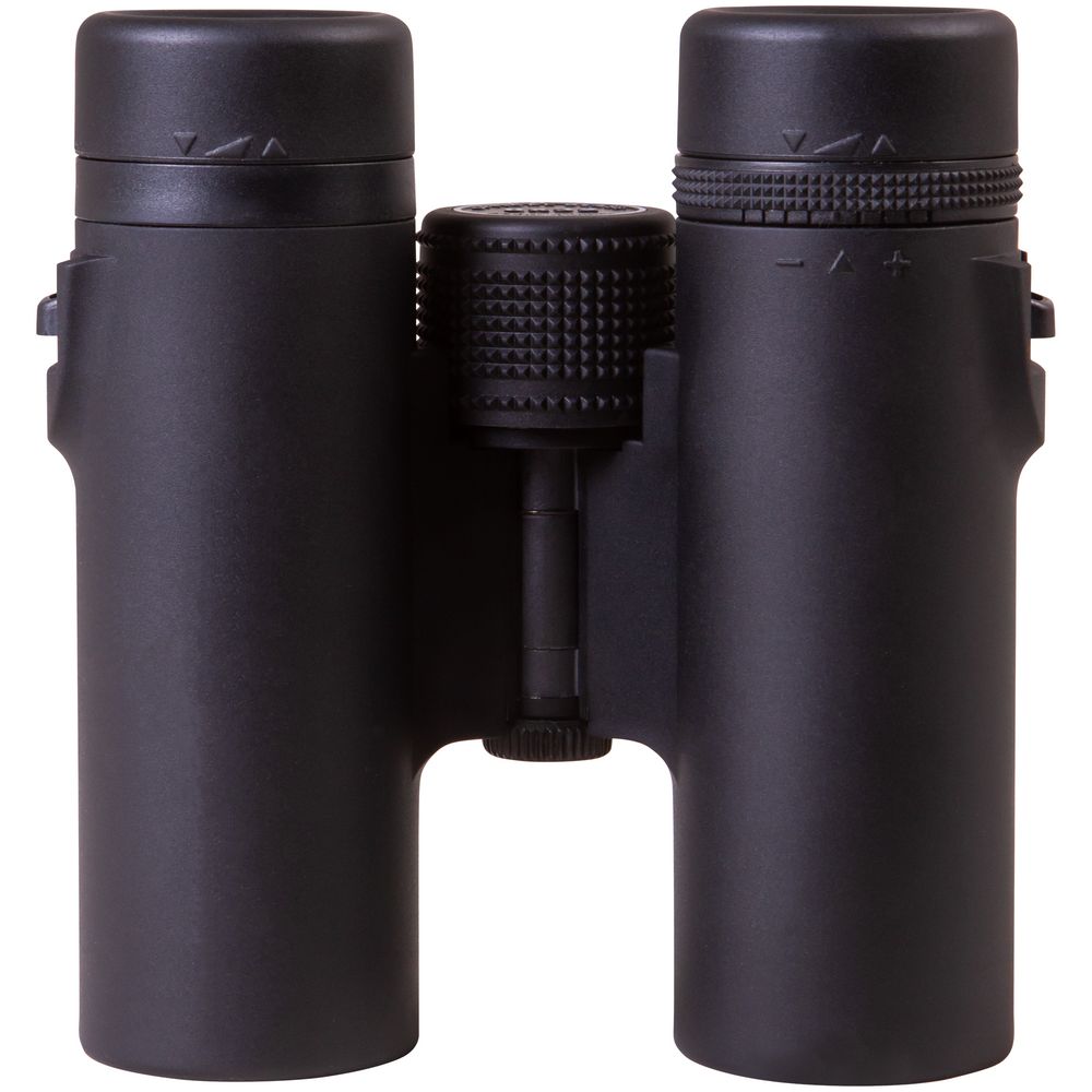 Бинокль создан на базе roof-призм и линз, сделанных из стекла BK-7. На линзы нанесено полное просветляющее покрытие — оно улучшает светопропускание и повышает качество картинки. У правого окуляра есть диоптрийная коррекция — с помощью специального кольца можно отрегулировать резкость в зависимости от особенностей зрения наблюдателя. Для фокусировки используется барабан, расположенный в центре корпуса. У окуляров увеличенный вынос зрачка и удобные поворотно-выдвижные наглазники, положение которых легко регулировать.