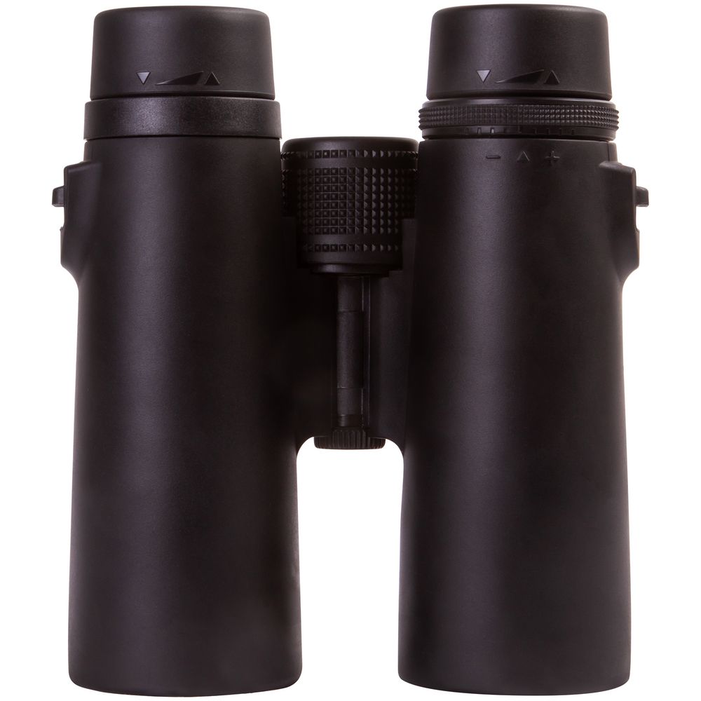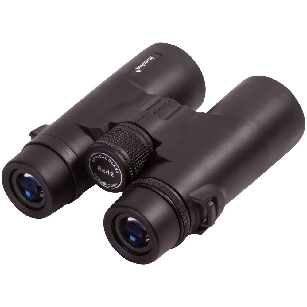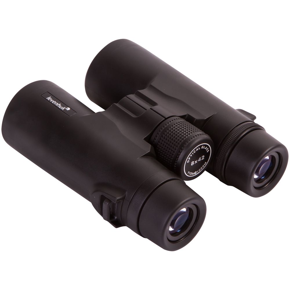 Бинокль создан на базе roof-призм и линз, сделанных из стекла BK-7. На линзы нанесено полное просветляющее покрытие — оно улучшает светопропускание и повышает качество картинки. У правого окуляра есть диоптрийная коррекция — с помощью специального кольца можно отрегулировать резкость в зависимости от особенностей зрения наблюдателя. Для фокусировки используется барабан, расположенный в центре корпуса. У окуляров увеличенный вынос зрачка и удобные поворотно-выдвижные наглазники, положение которых легко регулировать.