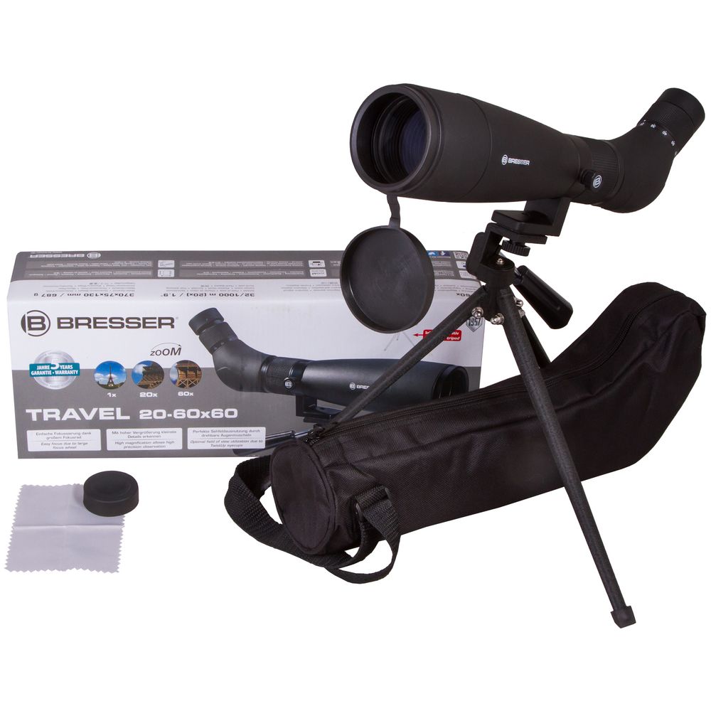 Оптика зрительной трубы сделана из стекла BK-7 с просветлением голубого цвета. Передаваемое изображение получается четким, детализированным и ярким. Вести наблюдения можно даже в сумерках или на рассвете, т. е. при недостаточном внешнем освещении.В комплект входят сумка для переноски и хранения, металлический настольный штатив и защитные крышки объектива и окуляра.
