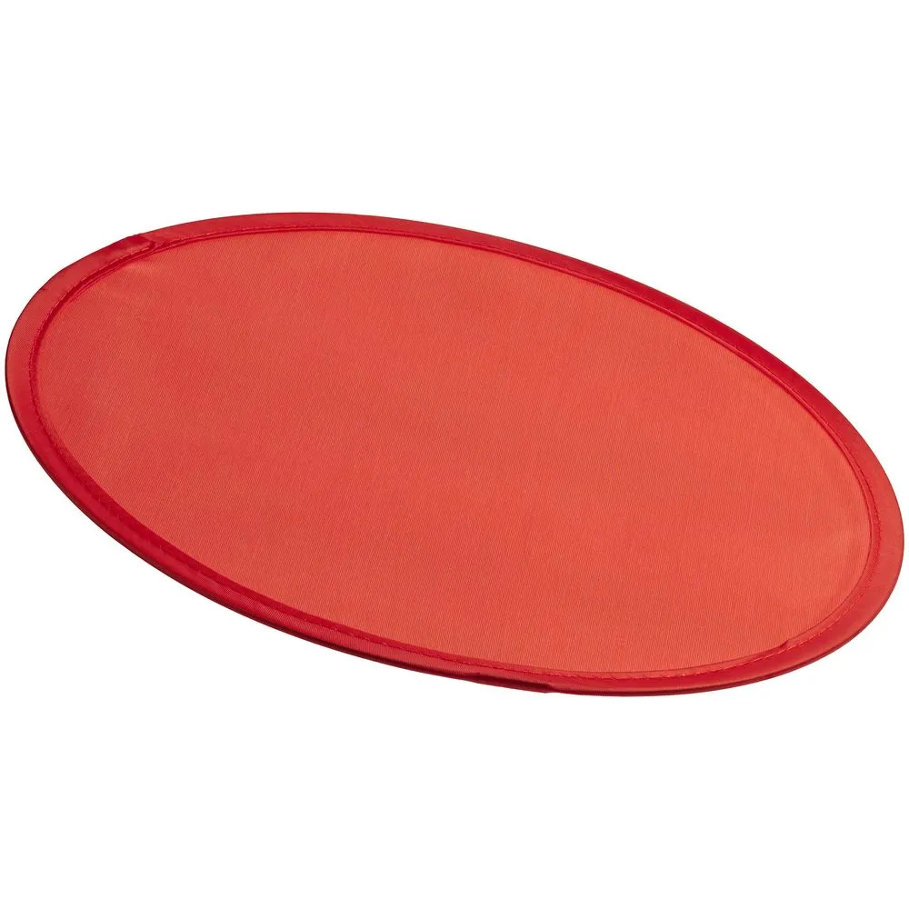 По периметру фрисби расположен гибкий обруч, что позволяет сложить ее в маленький чехол.