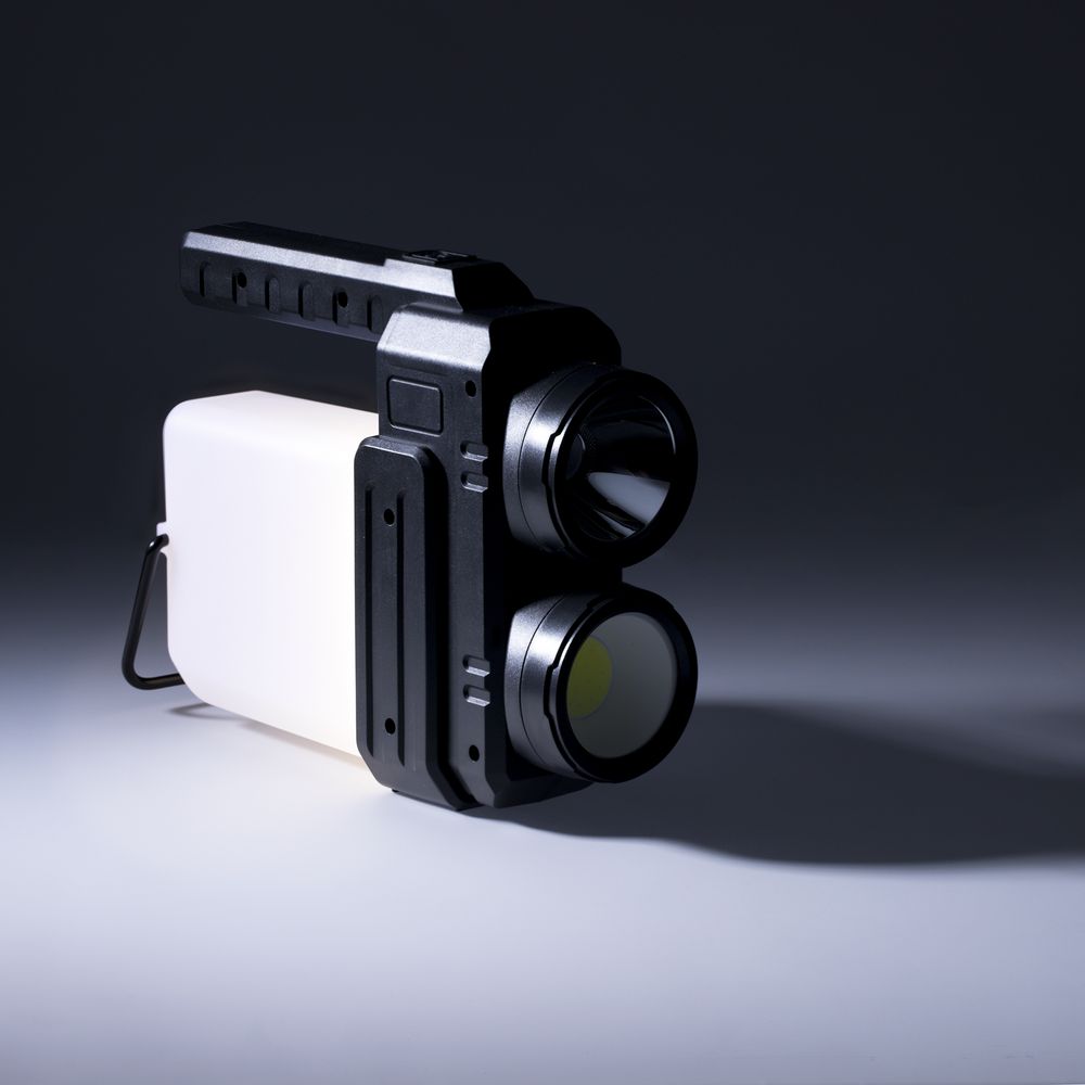 - Рассеянный луч света — светодиод COB мощностью 400 лм, дальность светового луча до 25 м, время работы до 4 ч
