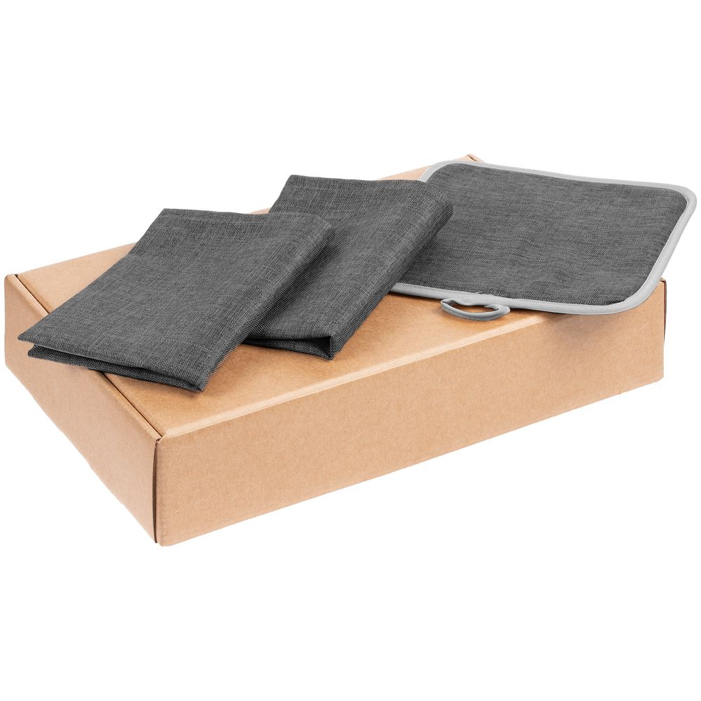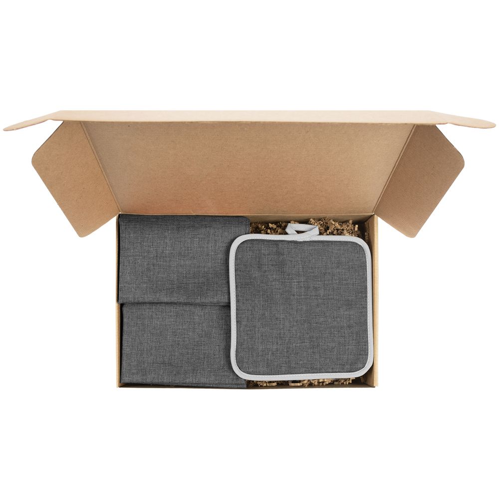 салфетка - полиэстер 100%; прихватка - полиэстер 100%; коробка - микрогофрокартон, плотность 385 г/м²