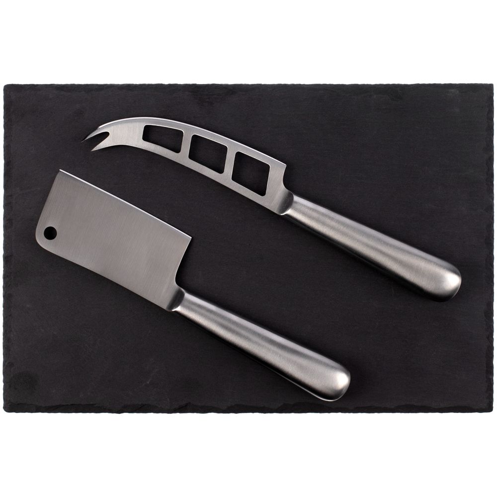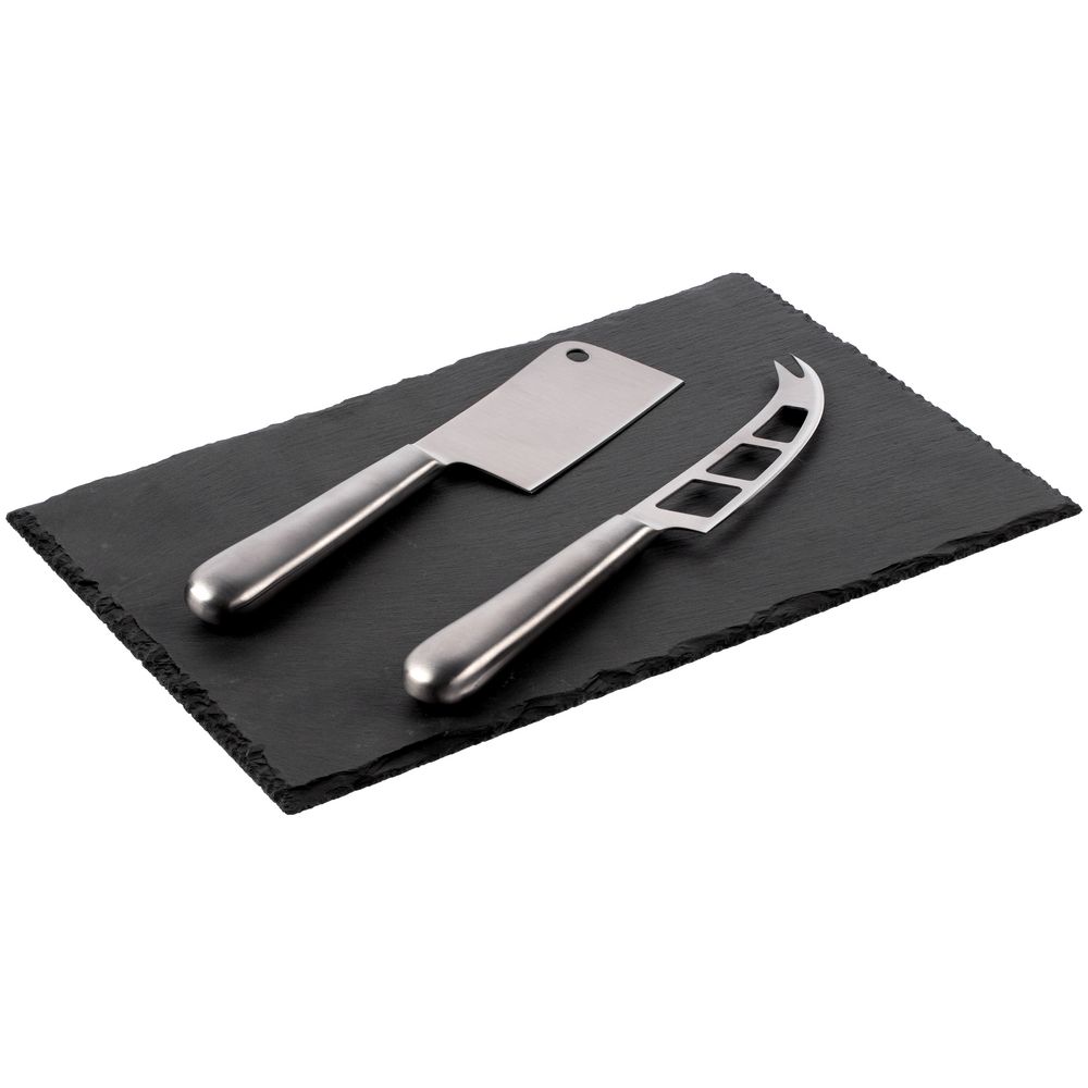 Выполненная из сланца доска идеальна для подачи закусок.В комплекте сланцевая доска, нож-топорик для твердых сортов сыра, нож для сыров средней мягкости.