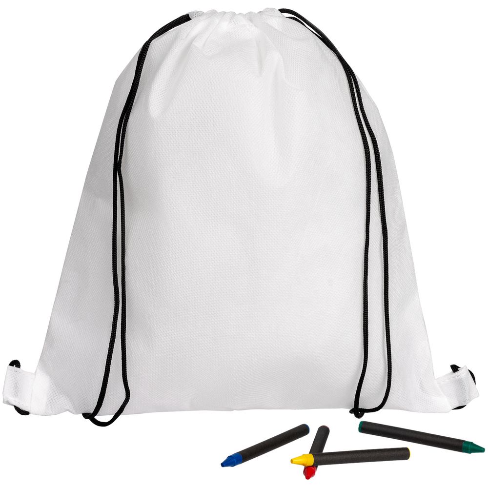 Можно оставить чистым, а можно напечатать заготовку для раскраски.В наборе рюкзак-раскраска, 4 восковых мелка.