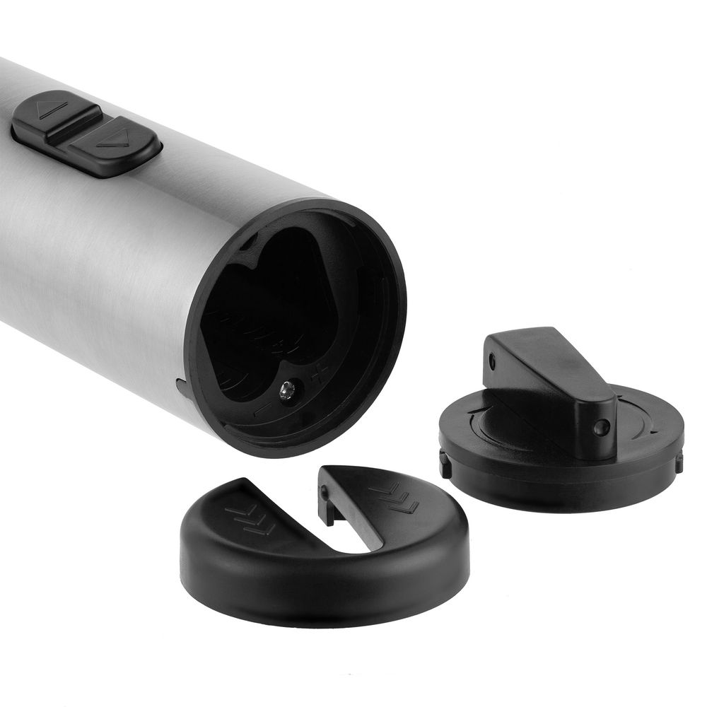 Нажмите нижнюю кнопку, и лезвие вкрутится в пробку, нажмите верхнюю — и бутылка будет открыта.