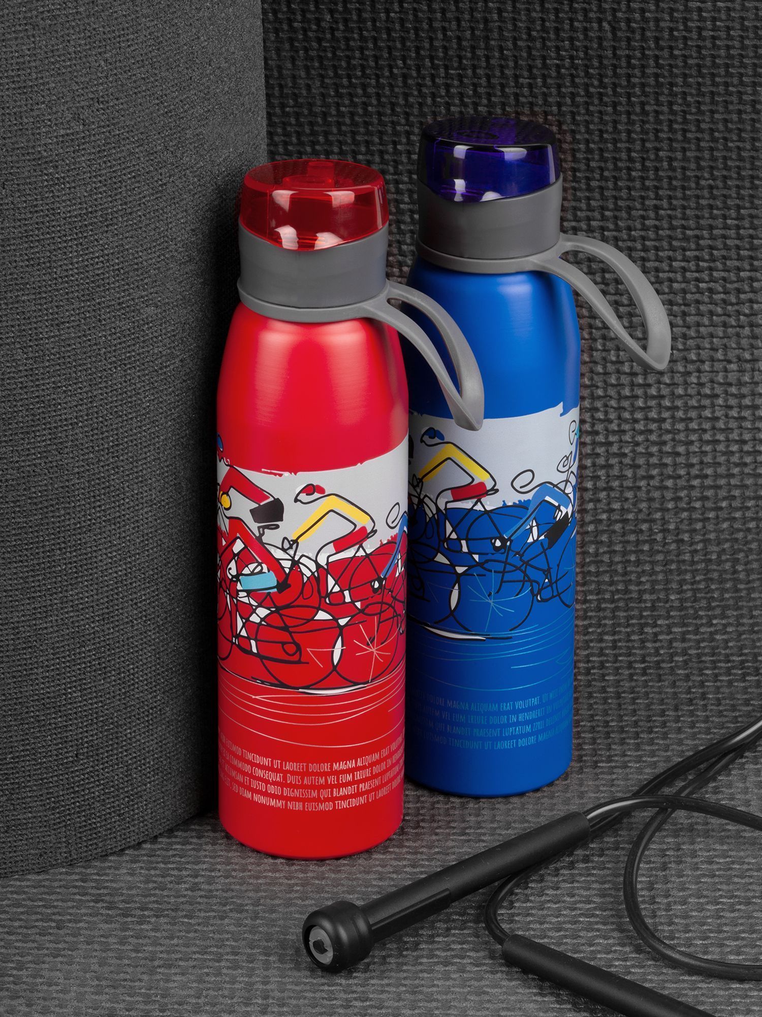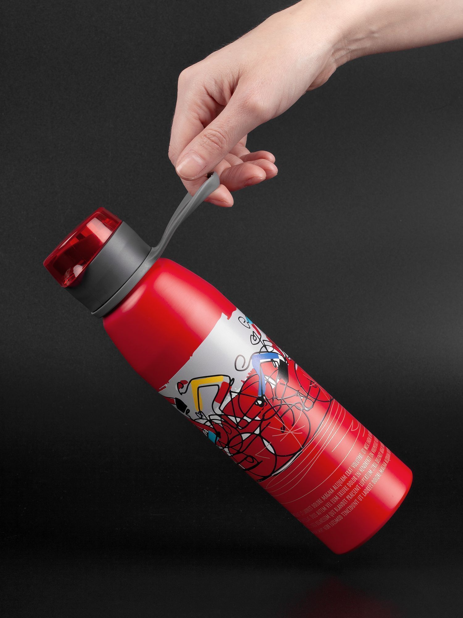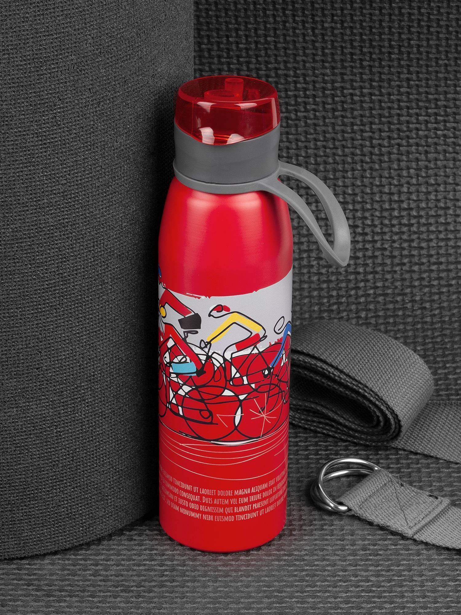 Легкая бутылка для спорта с откидной крышкой и силиконовой петлей для удобной транспортировки.