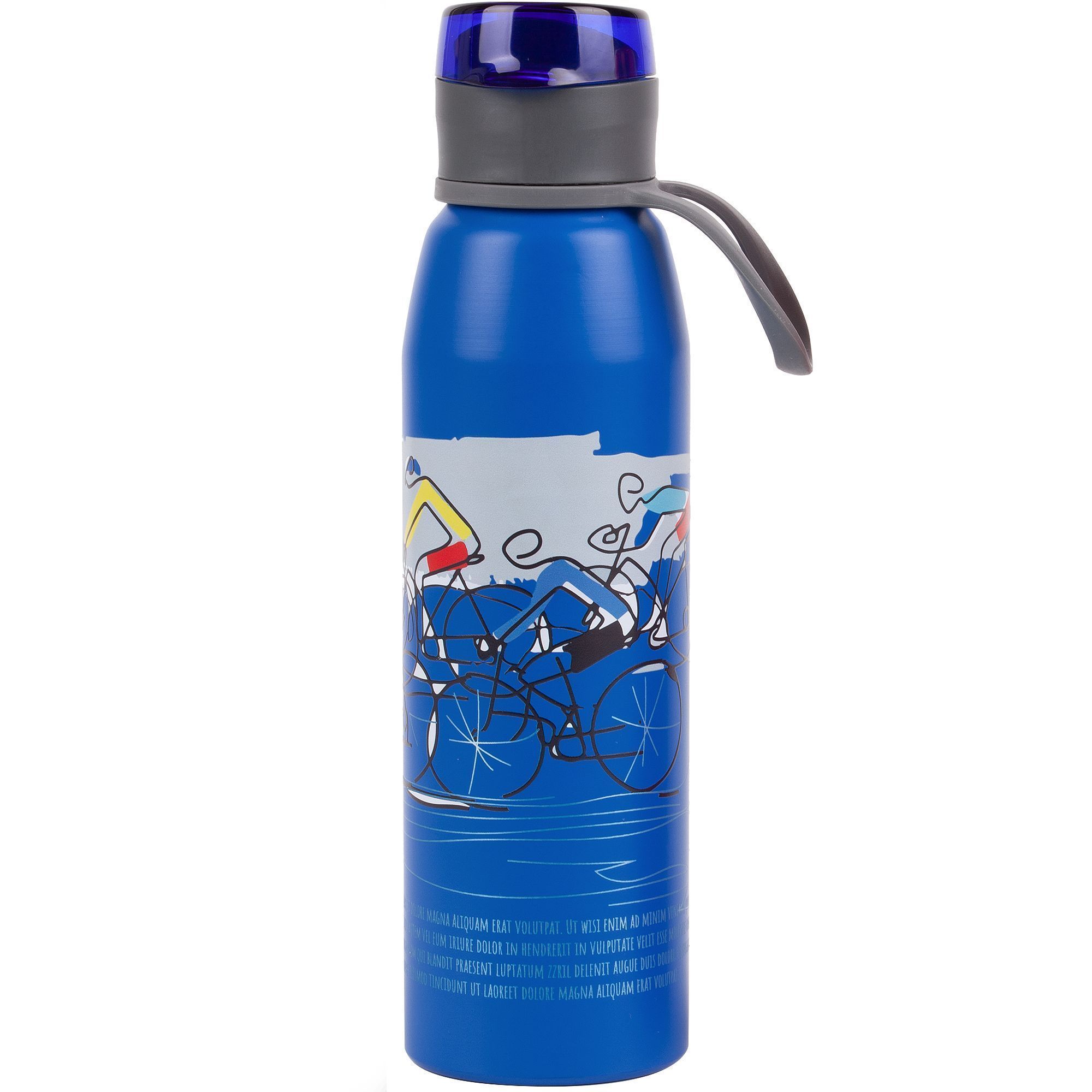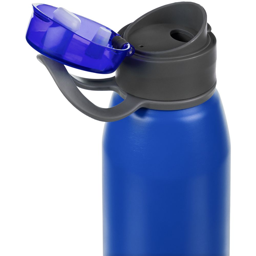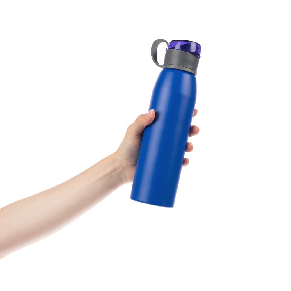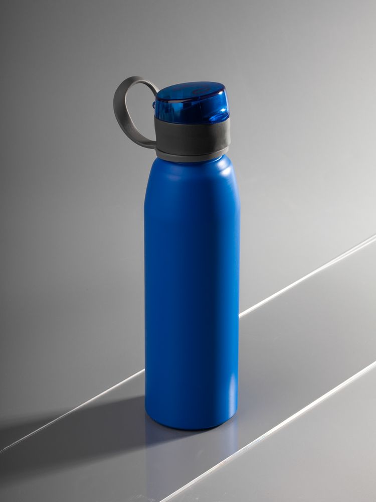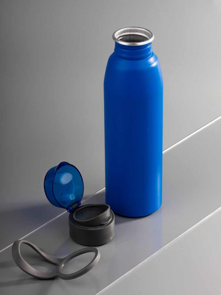 Легкая бутылка для спорта с откидной крышкой и силиконовой петлей для удобной транспортировки.