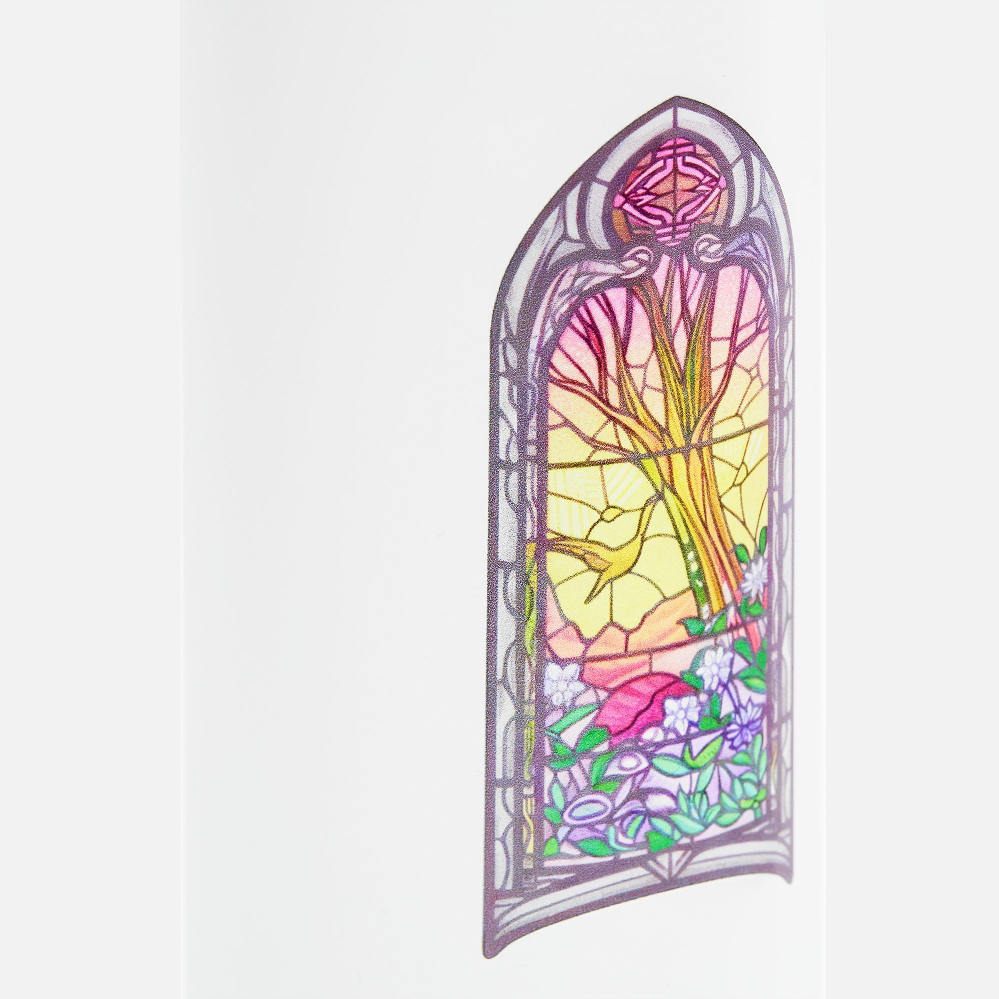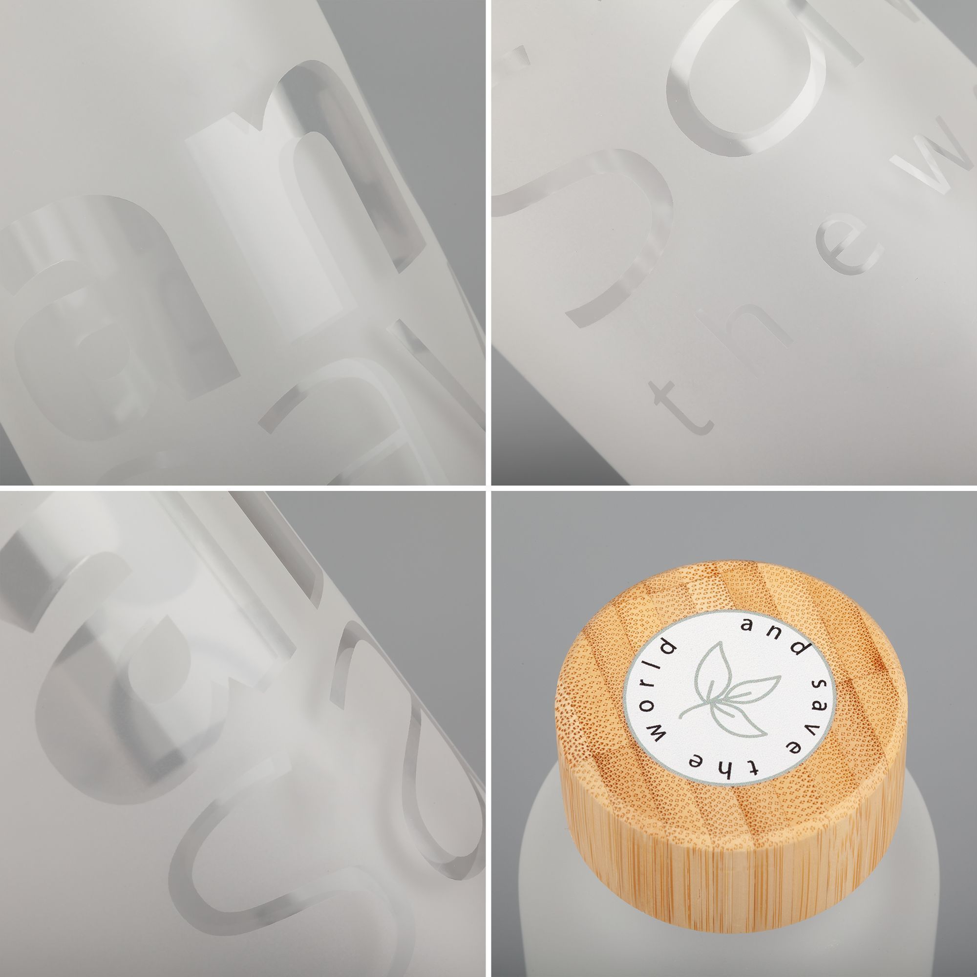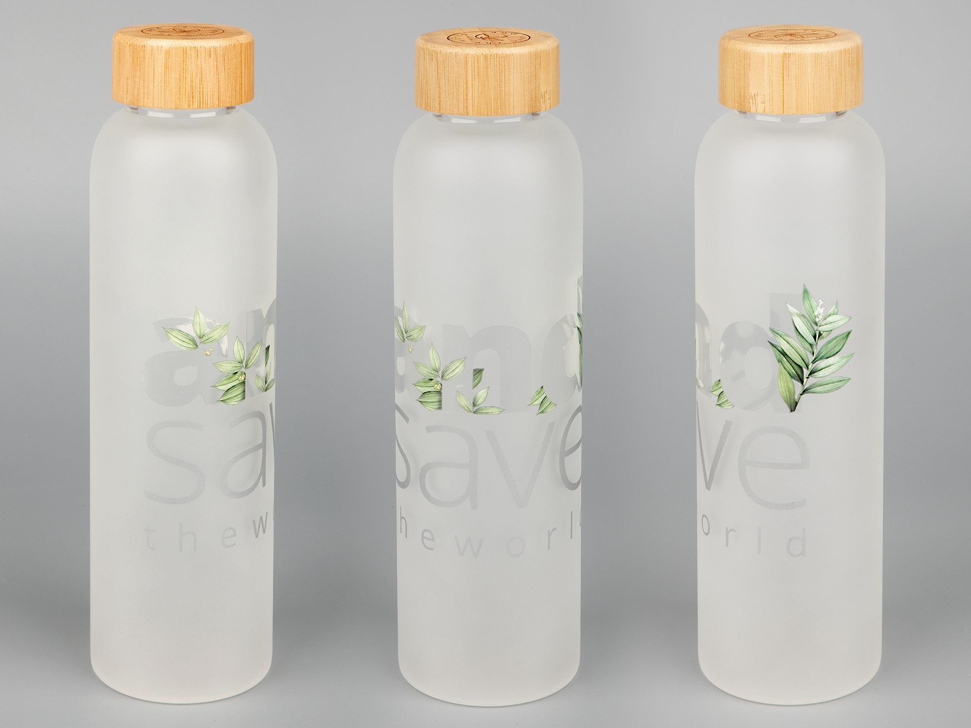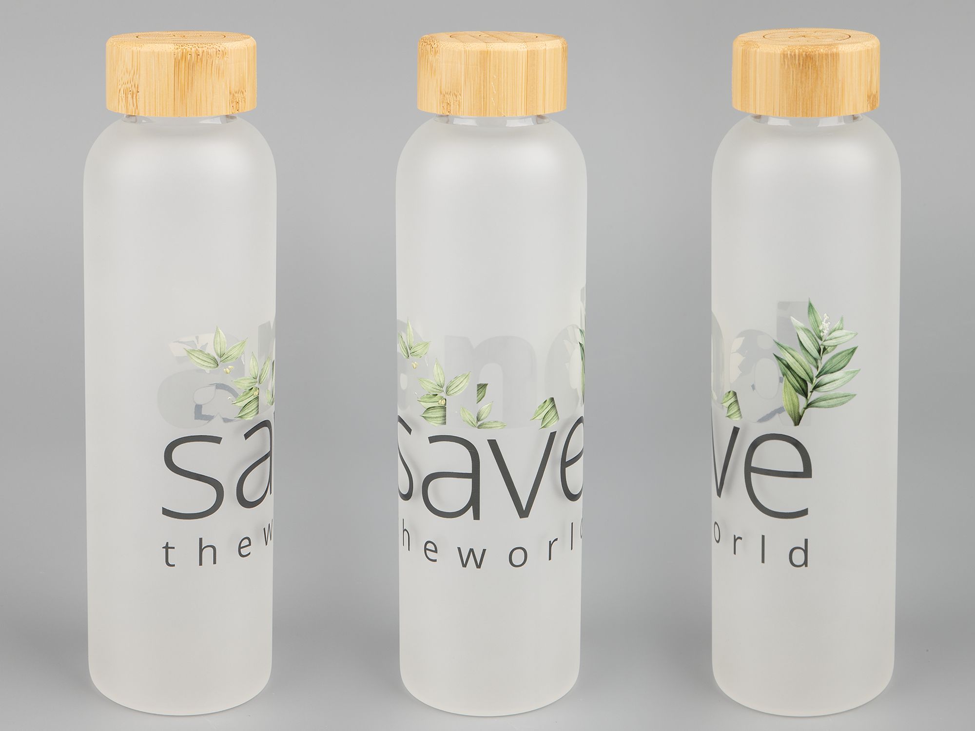 Технология УФ-DTF-печати на бутылке Nube с использованием прозрачного лака позволяет создавать эффект трансформации: матовое покрытие становится прозрачным, открывая новые возможности для креативного дизайна.