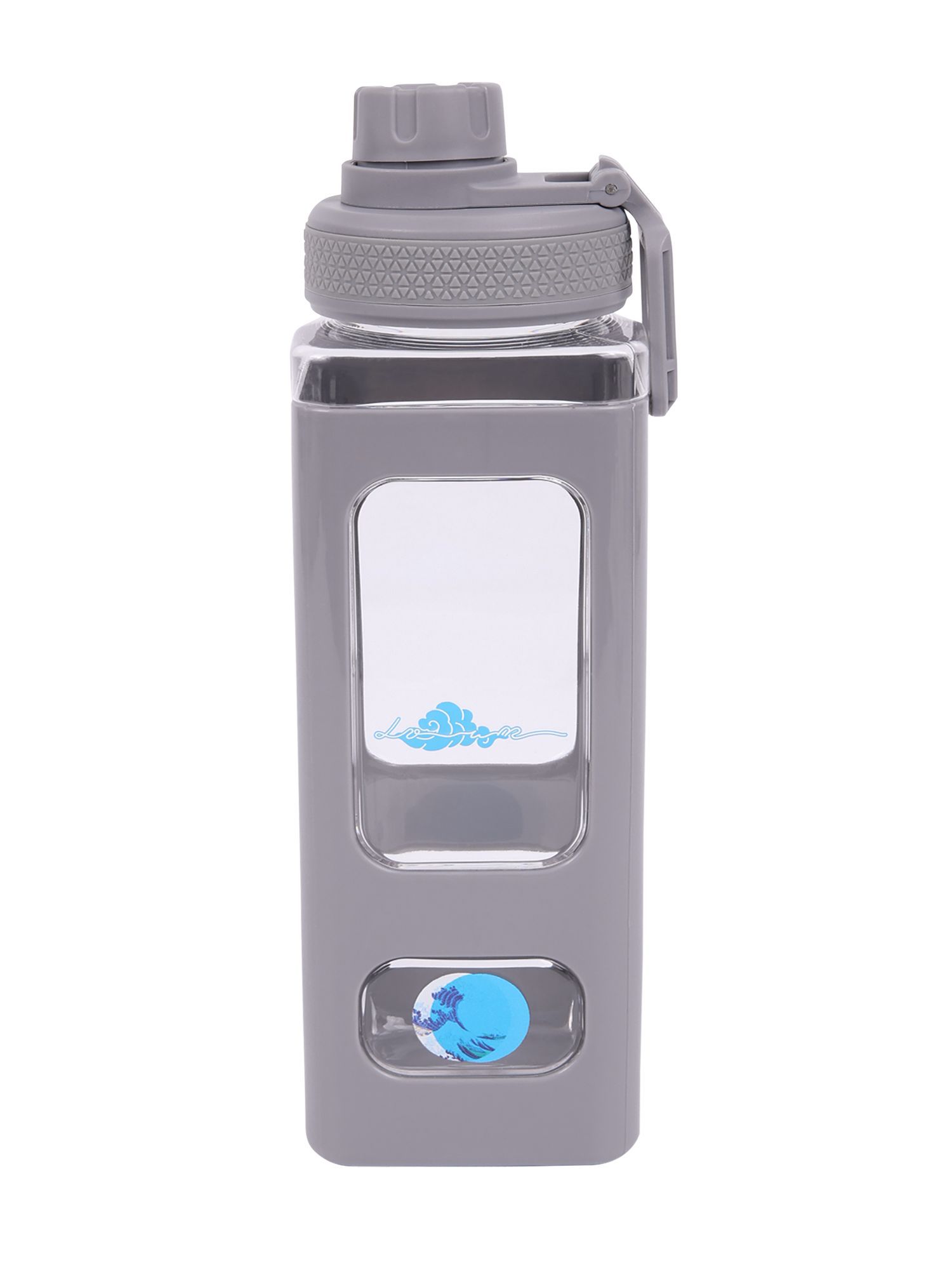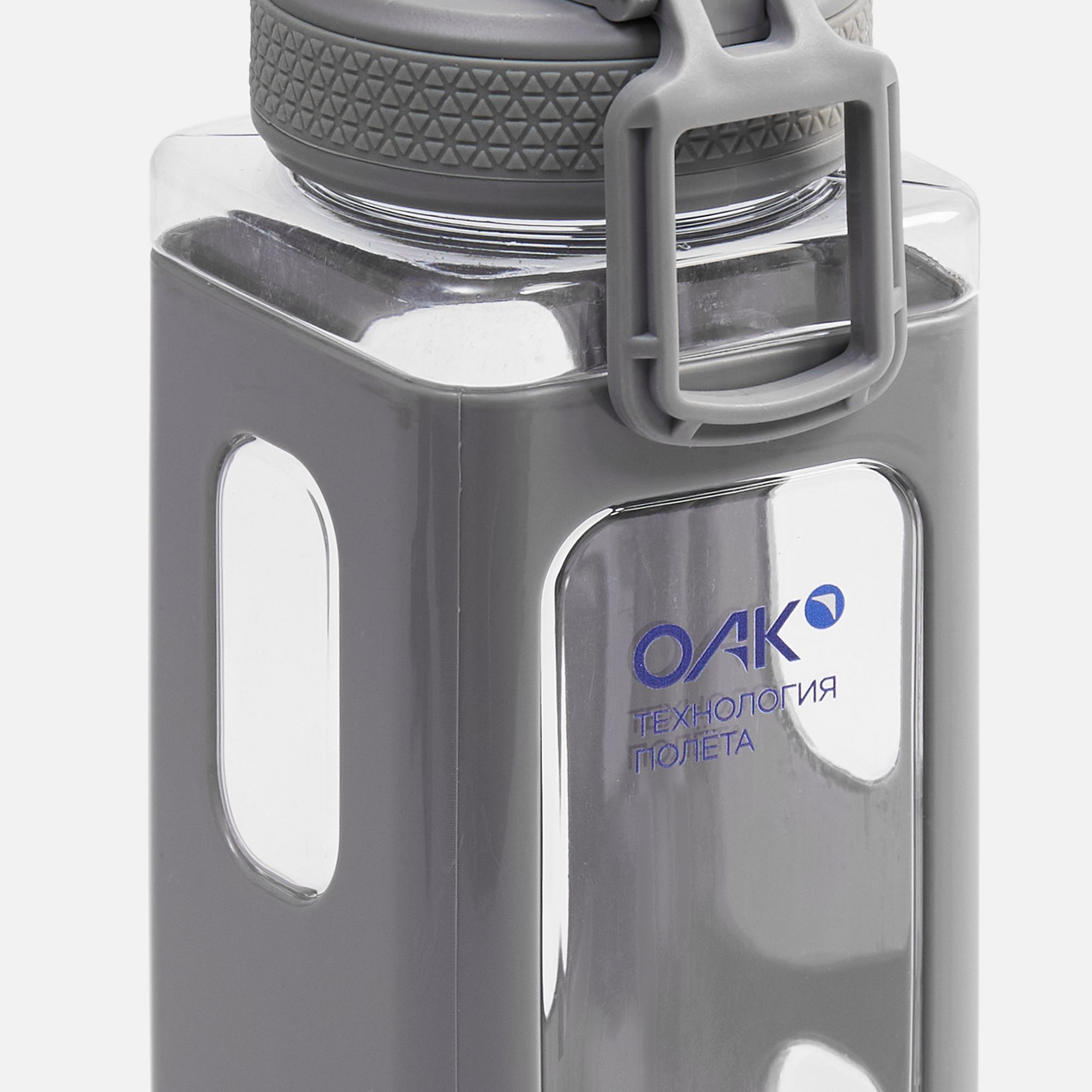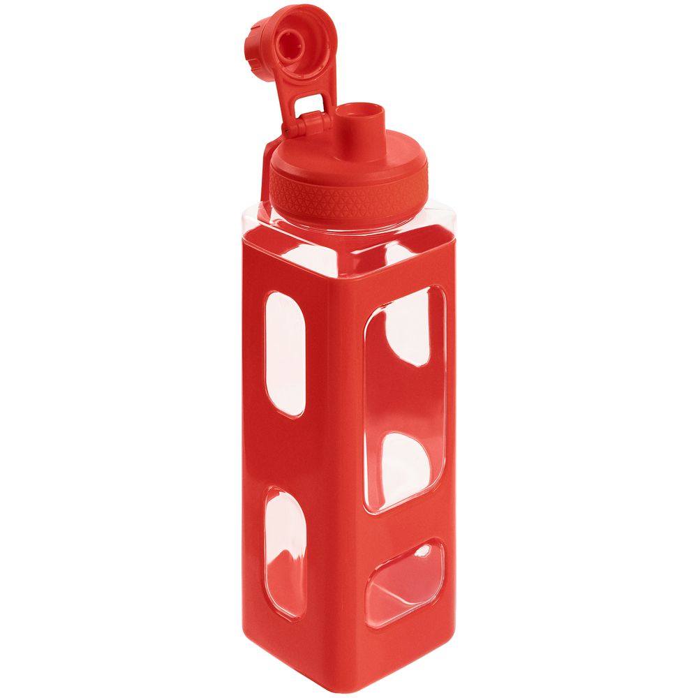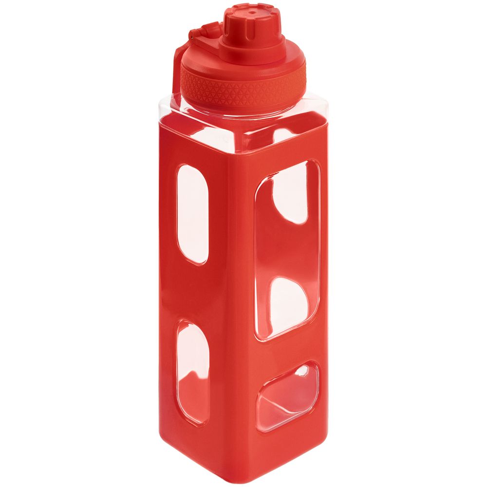 Вместительная квадратная бутылка для воды. Прозрачные окошки позволяют визуально оценить, сколько жидкости осталось внутри.