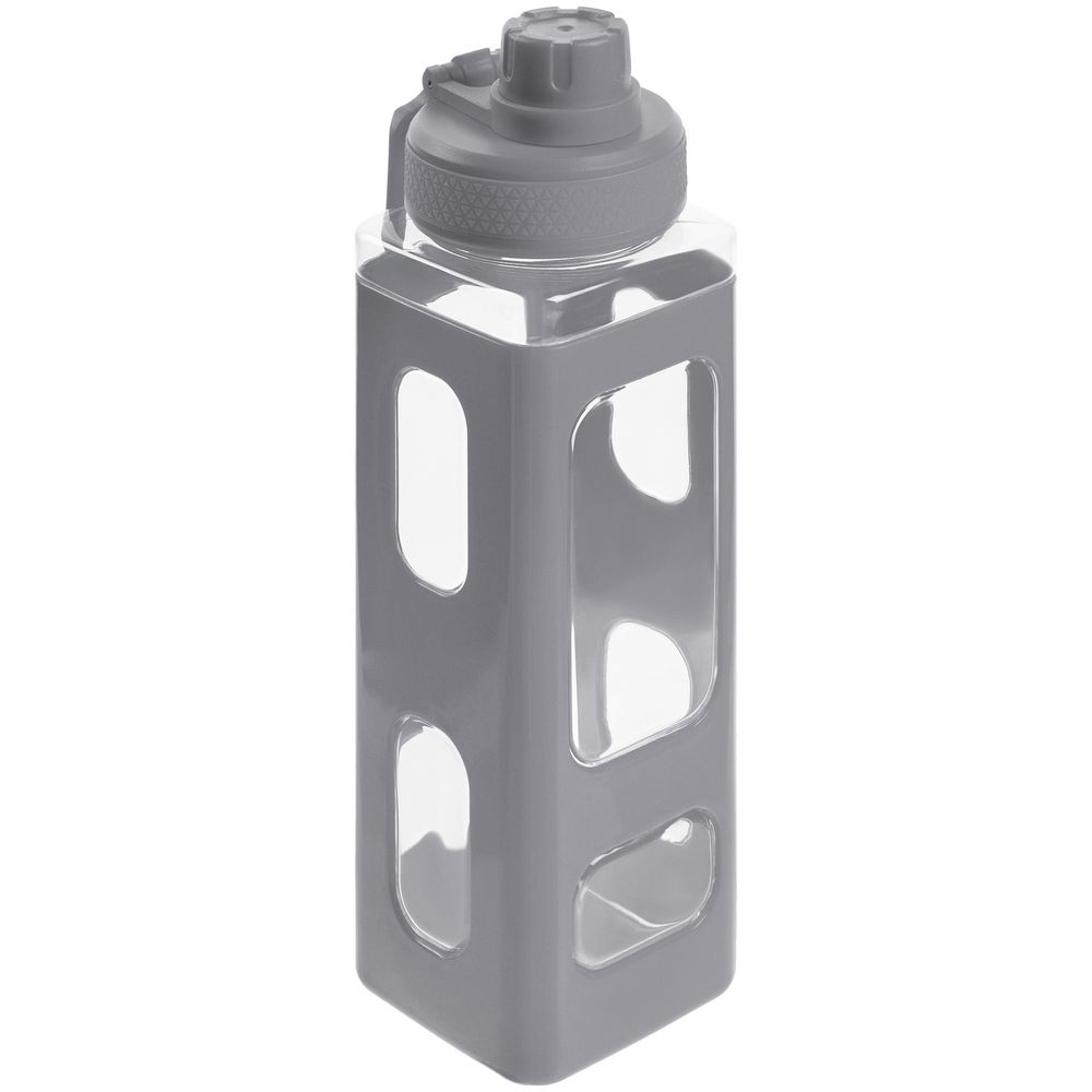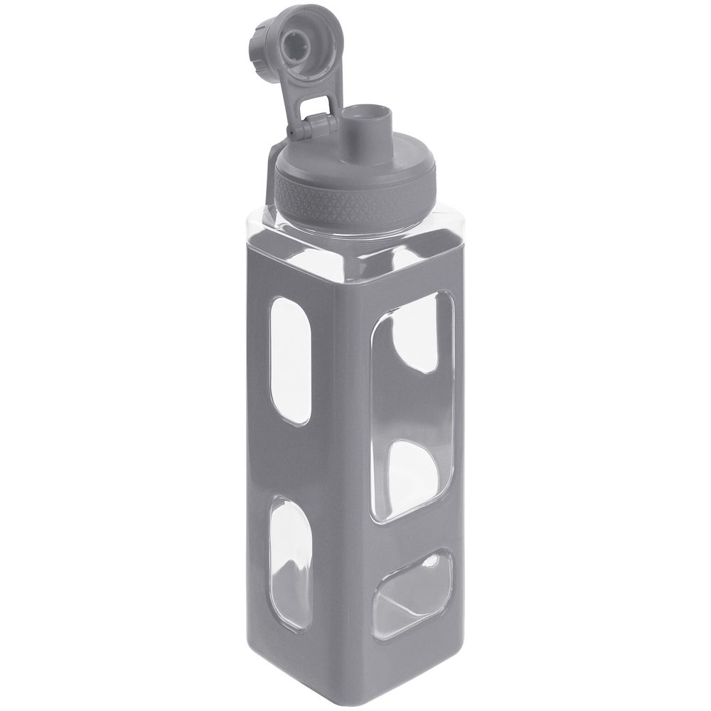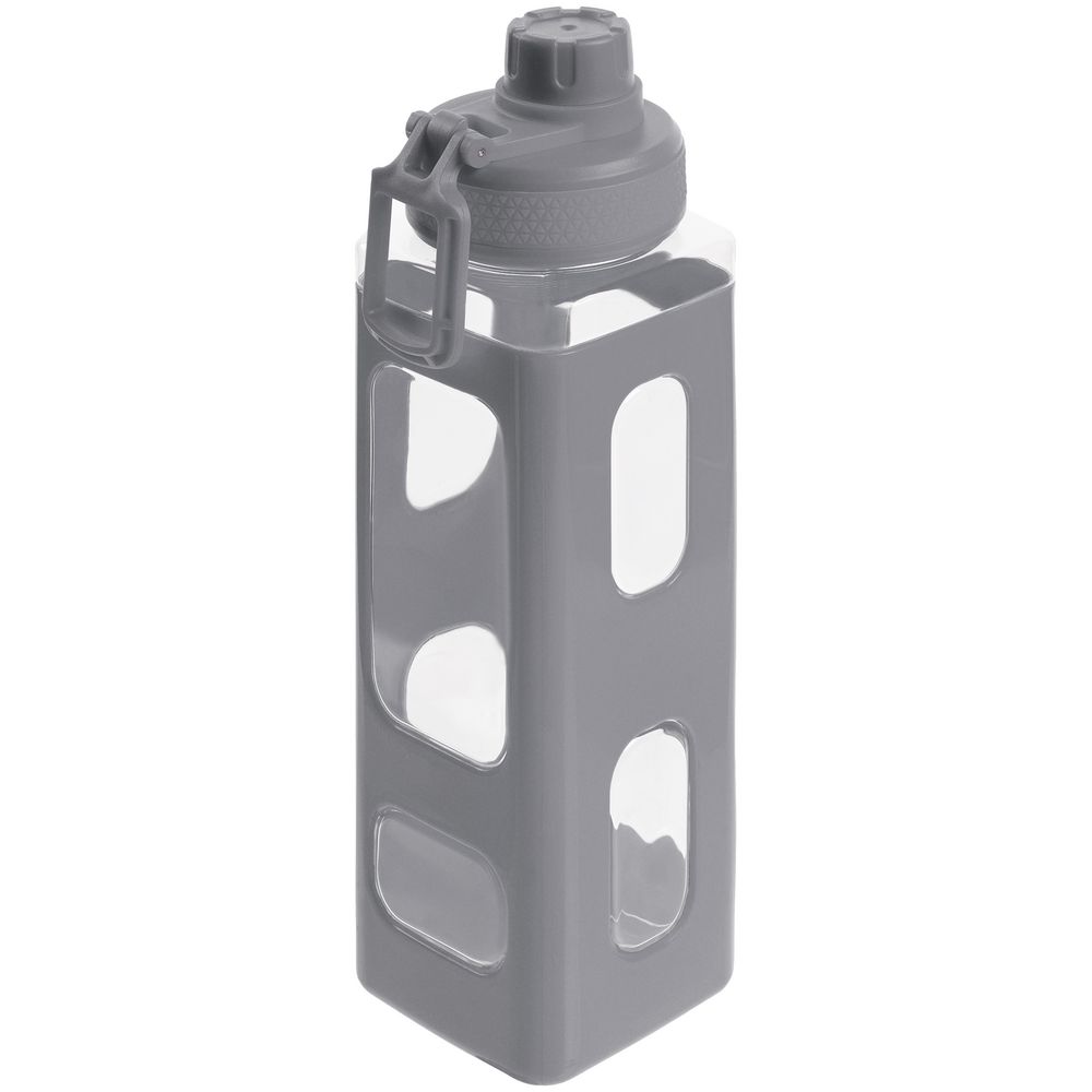 Вместительная квадратная бутылка для воды. Прозрачные окошки позволяют визуально оценить, сколько жидкости осталось внутри.