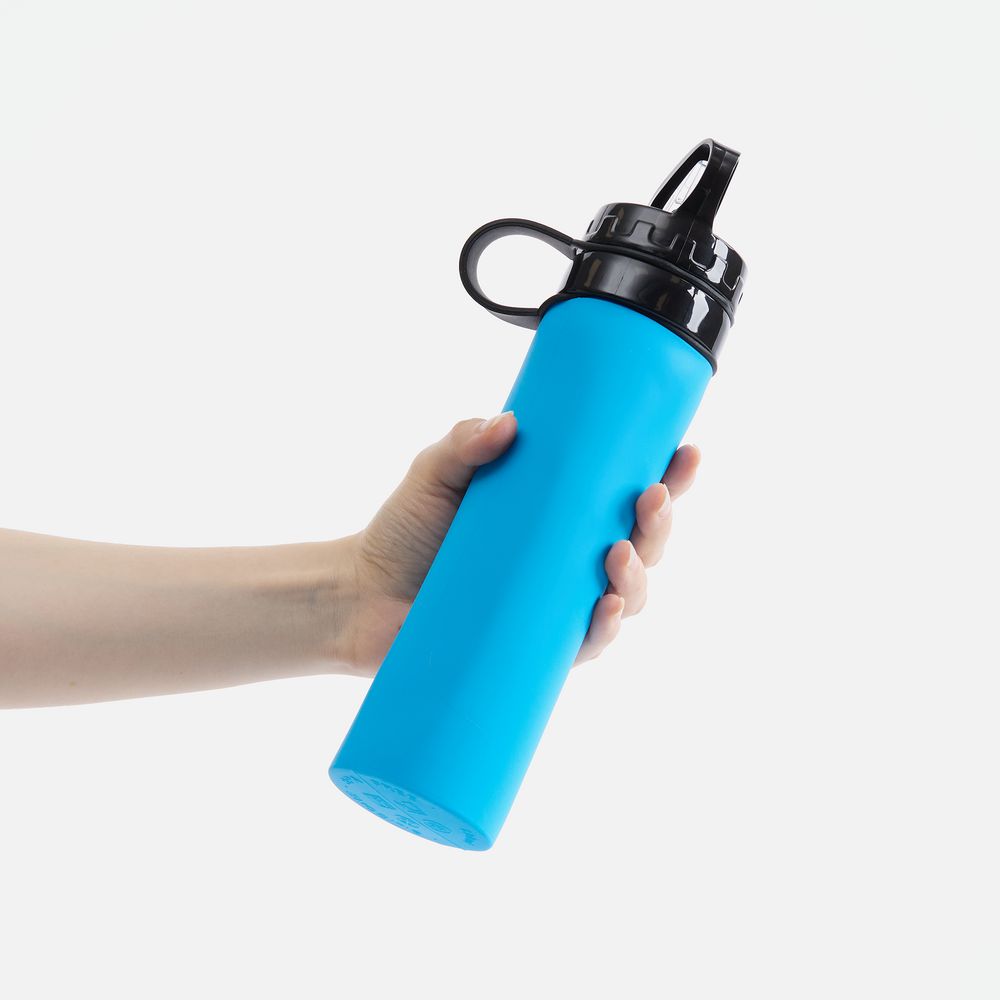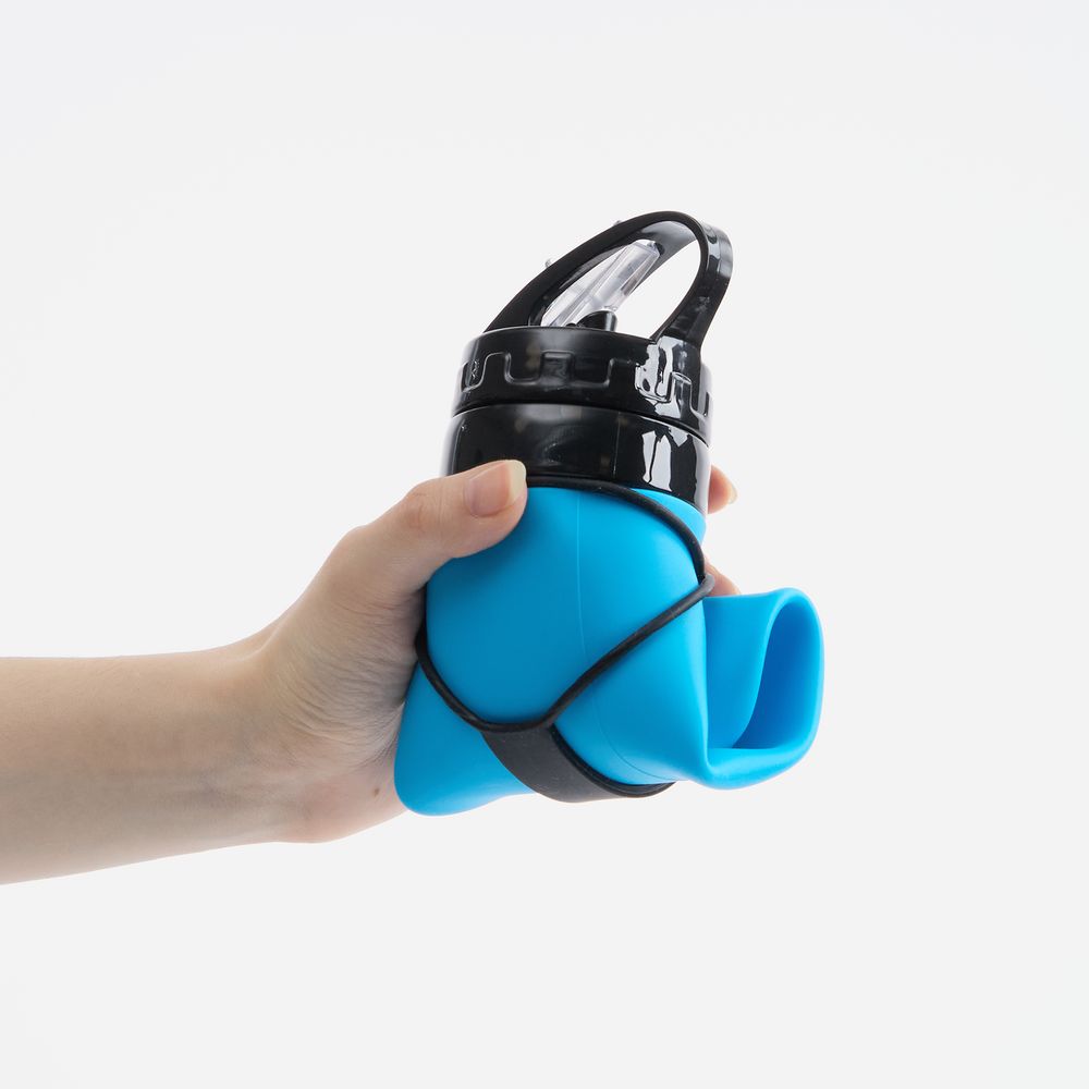 Складная силиконовая бутылка для воды Langfossen отлично подойдет для любителей спорта и туризма, а также для тех, кто выбирает спортивный стиль и функциональность каждый день. Она легкая, ударопрочная и компактная в сложенном виде: чтобы сэкономить пространство в сумке, нужно просто скрутить бутылку и закрепить ее силиконовой петлей. Хлястик также можно сложить петлей и использовать как ручку для переноски или крепления бутылки — к рюкзаку или сумке снаружи.