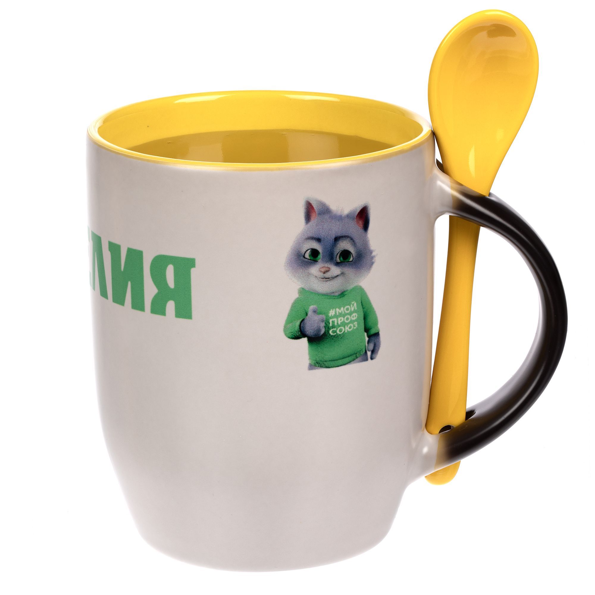 кружка: диаметр 8,2 см, высота 10,3 см, ширина с ручкой 11,6 см; ложка 12х2,5 см