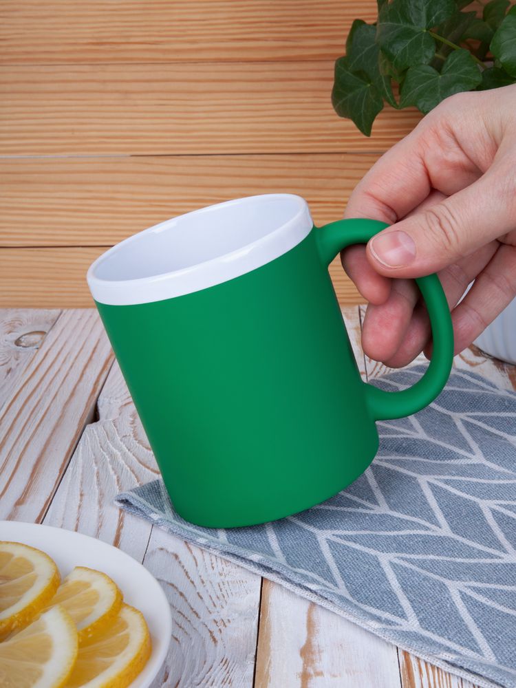 Кружка классической формы StopSpot привлекает внимание своим дизайном и покрытием. Яркая матовая поверхность выигрышно контрастирует с глянцевым белым ободком — так кружка выглядит необычно, а еще меньше пачкается во время эксплуатации.