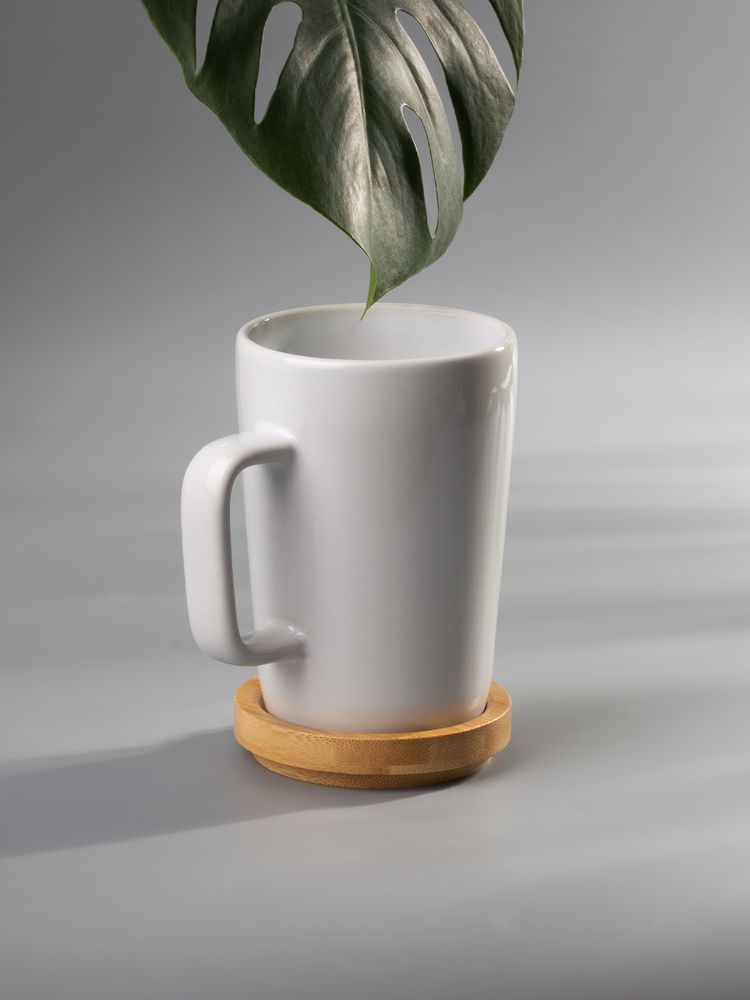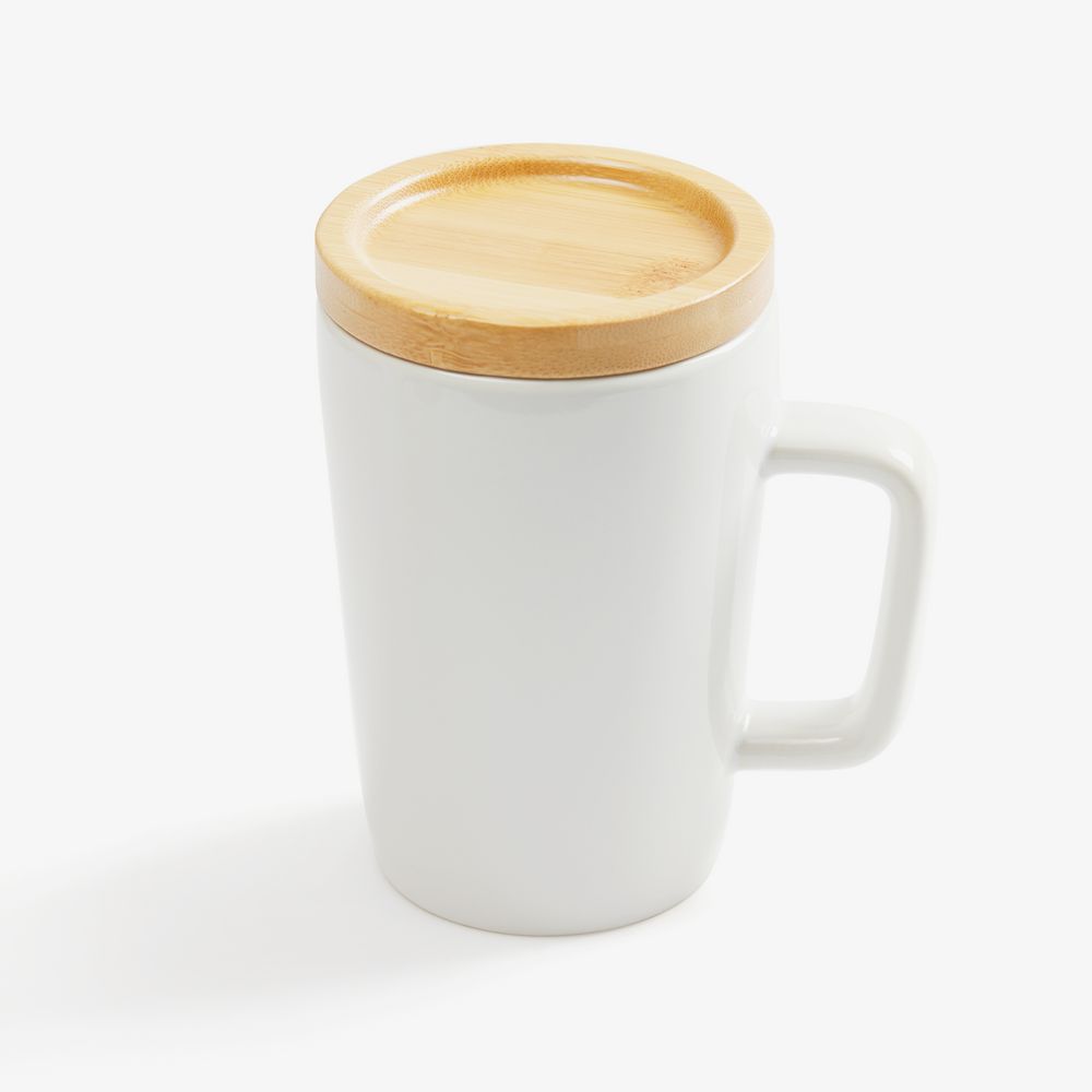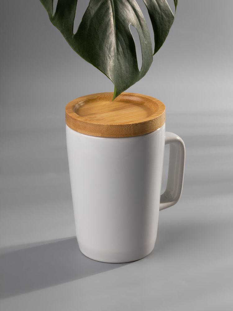 Главная особенность объемной кружки Vierra — это многофункциональная крышка-костер из бамбука. Она поможет защитить напиток от пыли или остывания, а также предотвратит нагревание стола или образование на нем пятен. А еще на ней удобно подавать небольшой комплемент к чаю: печенье или конфета прекрасно ложатся в углубление, составляя со стильной вытянутой кружкой элегантный дуэт.