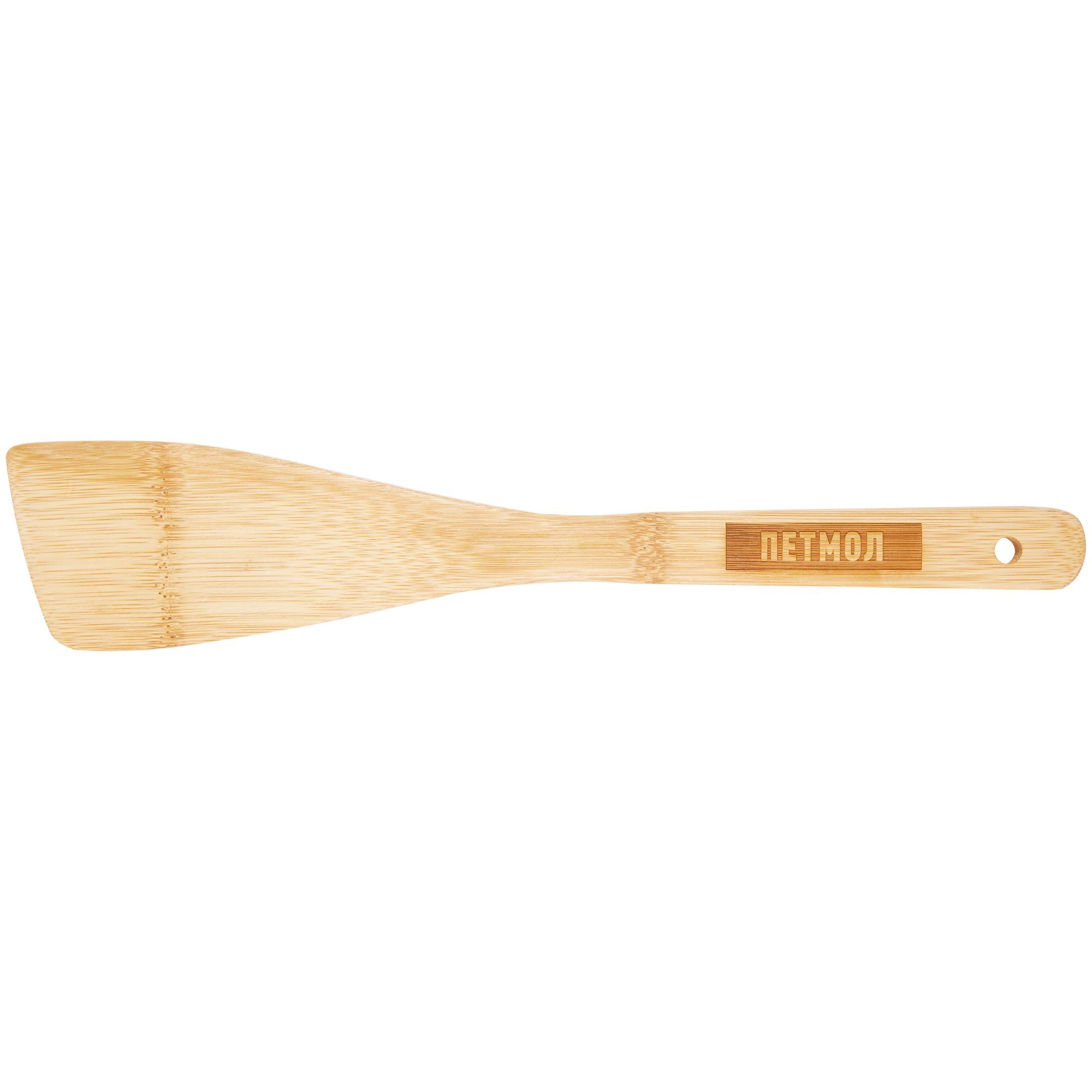 Лопатка изготовлена из бамбука, благодаря чему она не скользит в руке, не царапает поверхность и не впитывает запахи.Поставляется в полиэтиленовом пакете.