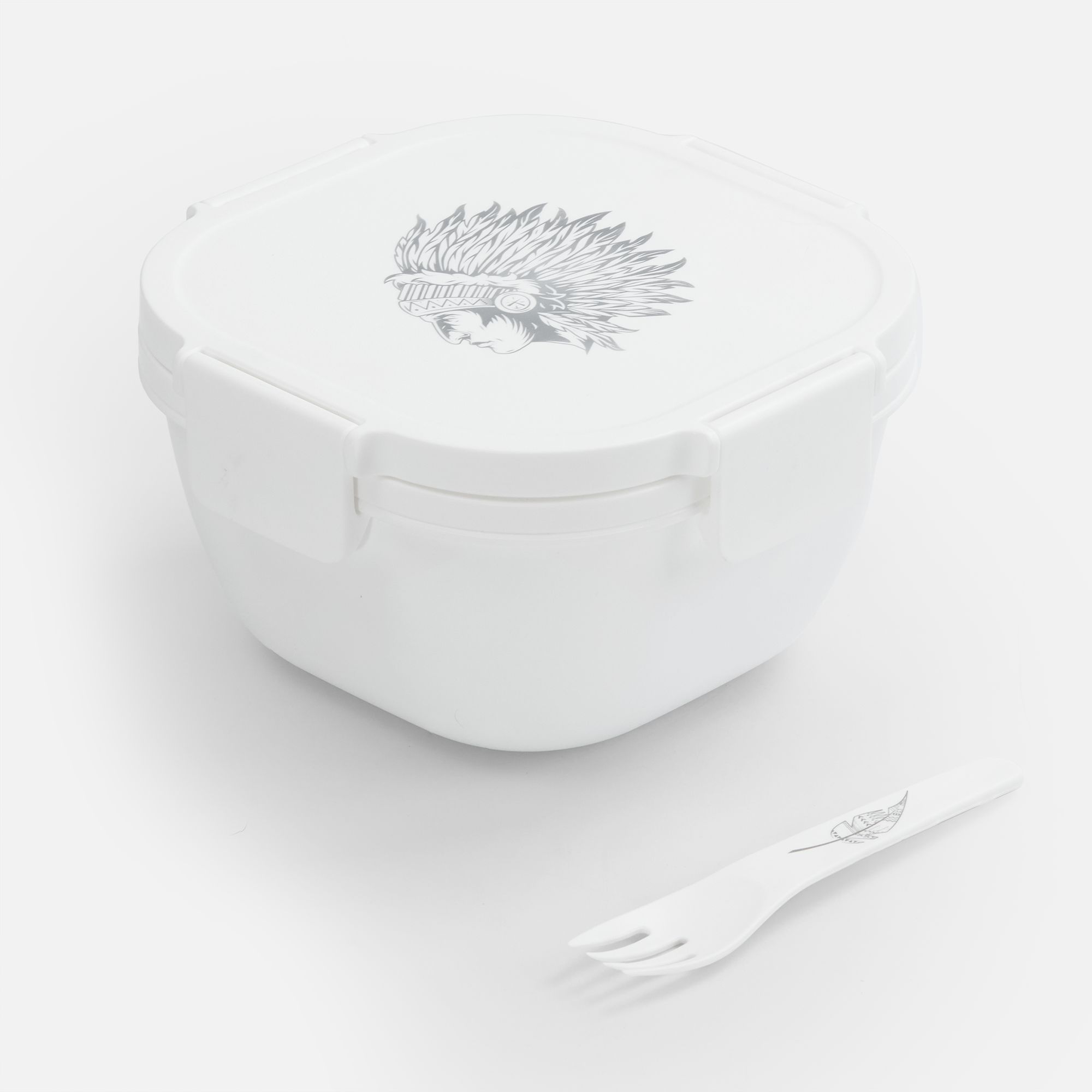 - Контейнер с 2 уровнями, вилкой и емкостью для соуса