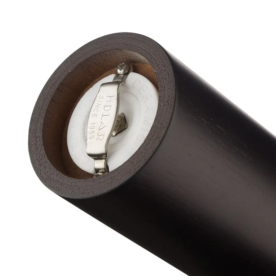 Мельница для соли в современном дизайне поможет во время готовки и украсит стол. Корпус выполнен из каучукового дерева — натурального материала повышенной прочности, который полностью безопасен для здоровья. Износостойкие жернова из качественной керамики хорошо измельчают кристаллы до состояния порошка. Степень помола можно регулировать.