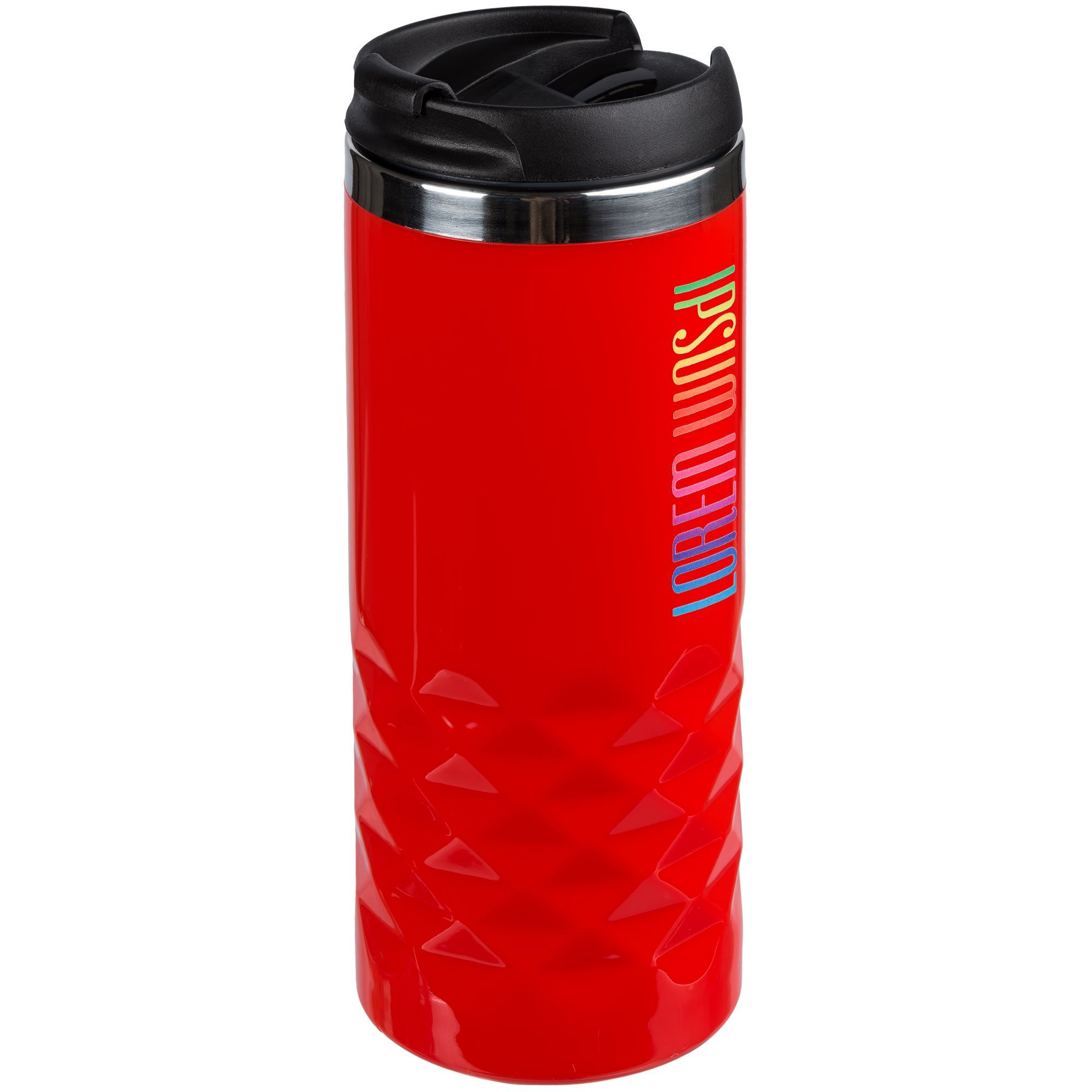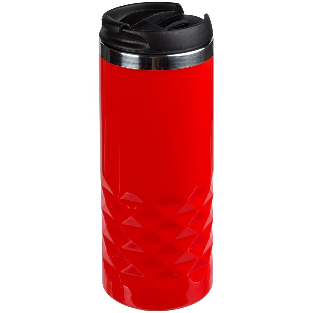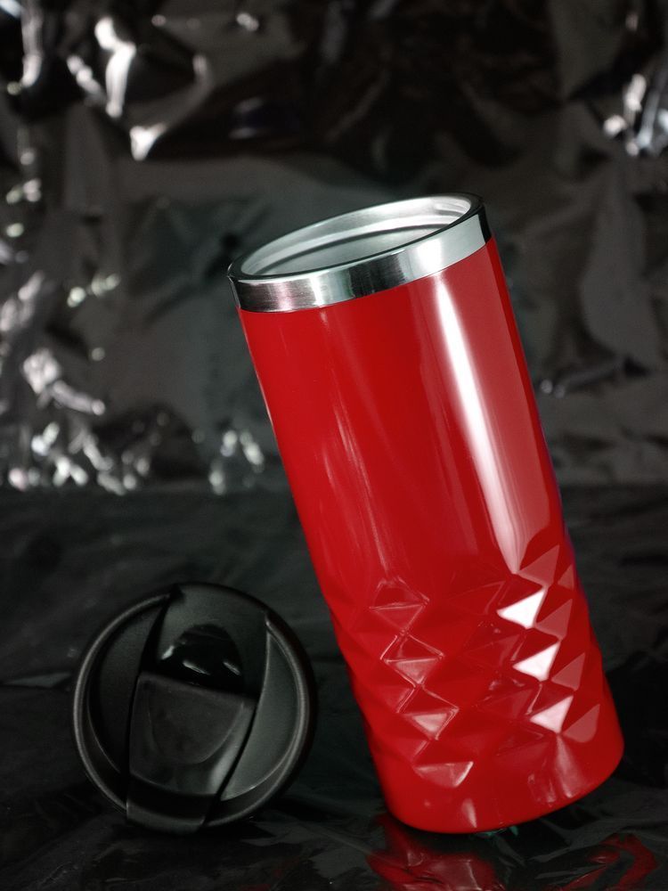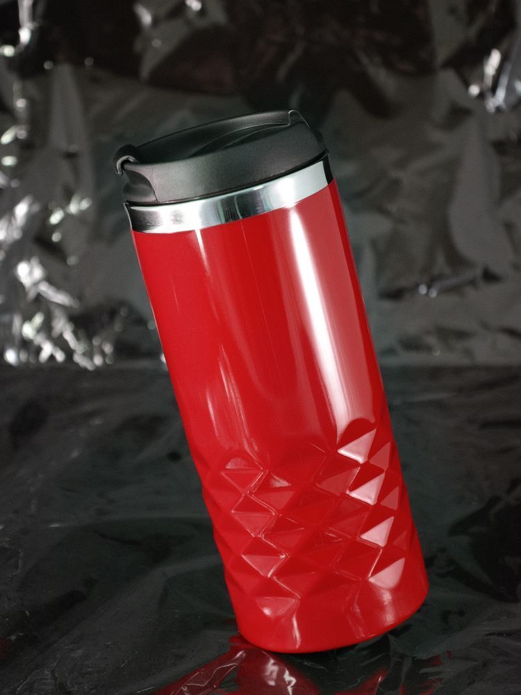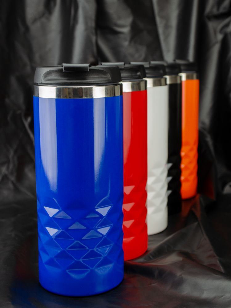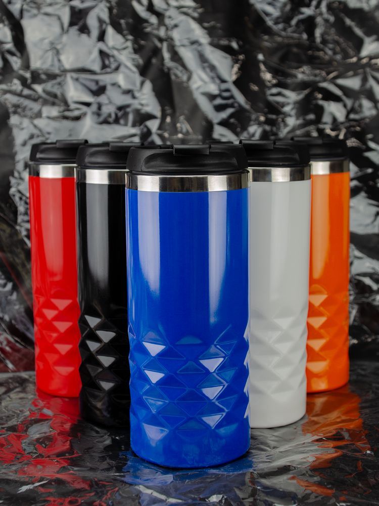 Двухслойная конструкция из пластика снаружи и пищевой нержавеющей стали внутри. Герметичная завинчивающаяся крышка с откидным клапаном для питья.
