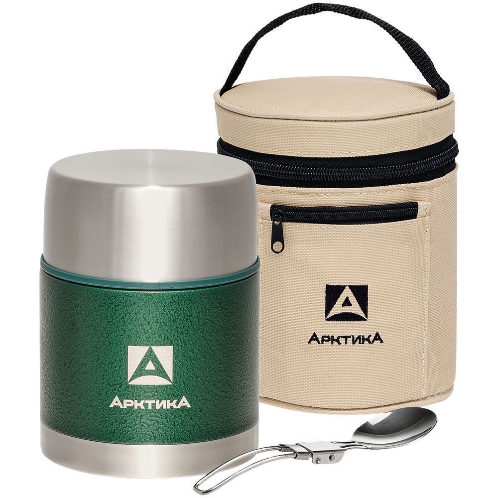 Готовый комплект для похода на природу: термос для еды с широким горлом и ударопрочным покрытием и легкая складная ложка в термочехле.