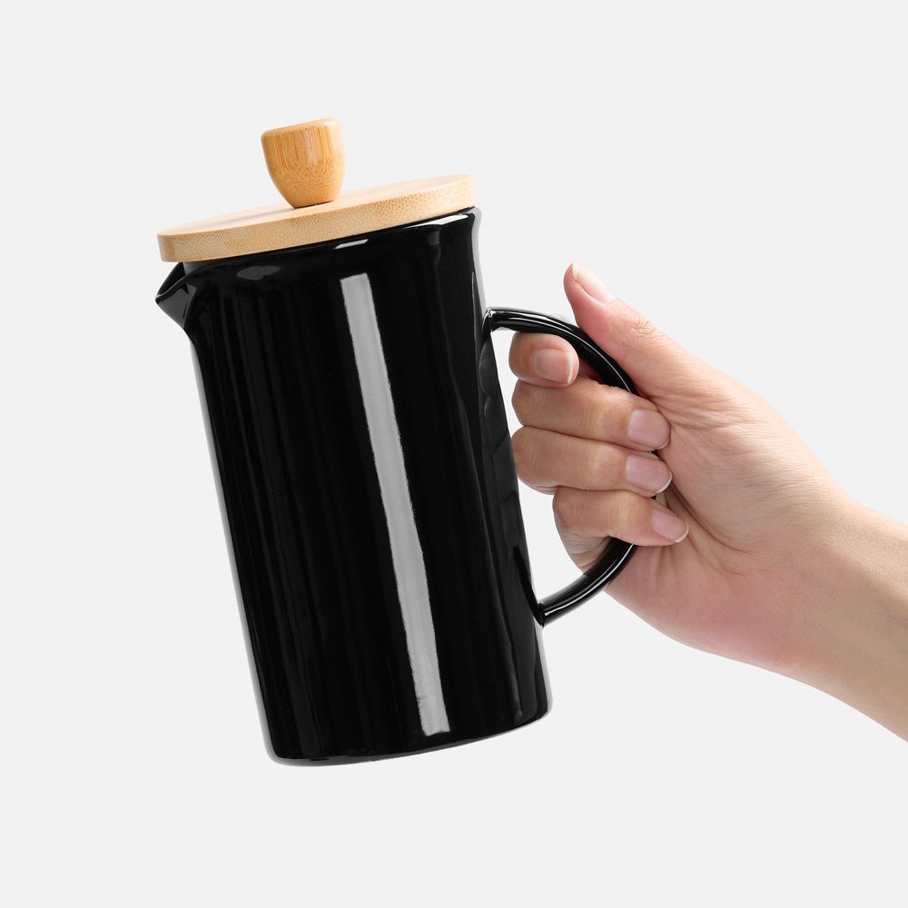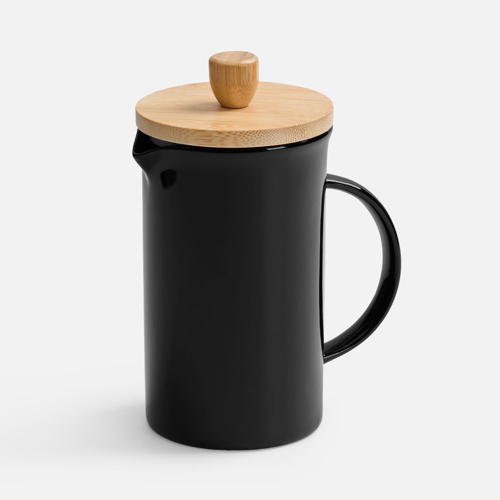 Элегантный керамический френч-пресс Mezzo в глянцевом черном исполнении — функциональный кухонный аксессуар и украшение любого пространства, от уютной домашней кухни до стильного офиса.Емкость 600 мл.