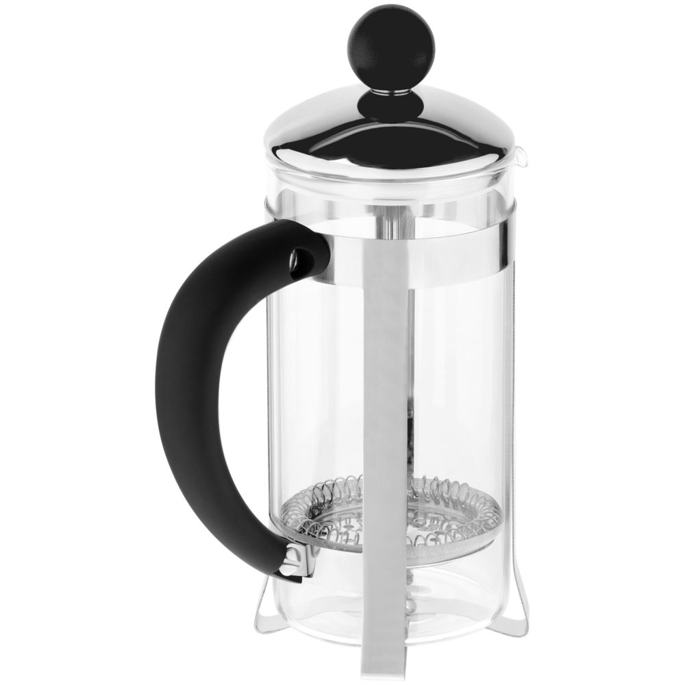 Элегантная оправа из нержавеющей стали защитит колбу от повреждений, а пластиковая ручка не даст обжечься о горячую поверхность.
