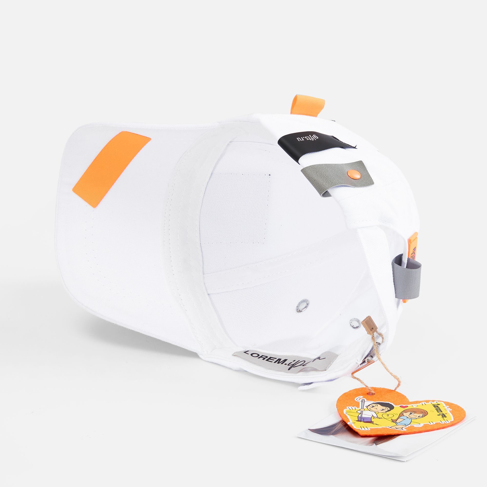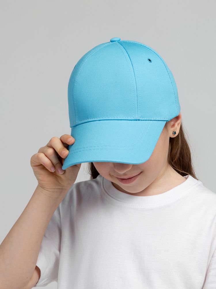 Детская модель с шестью клиньями без шва на лбу. Металлические люверсы покрашены в тон изделия. Сзади металлическая застежка для регулировки размера.