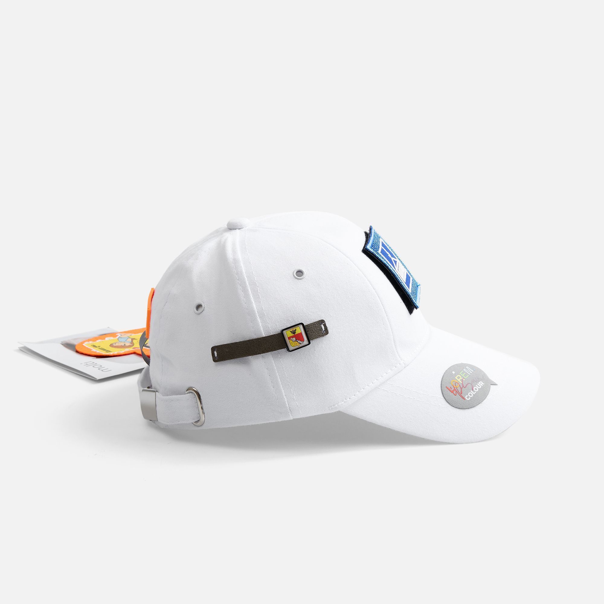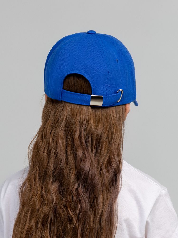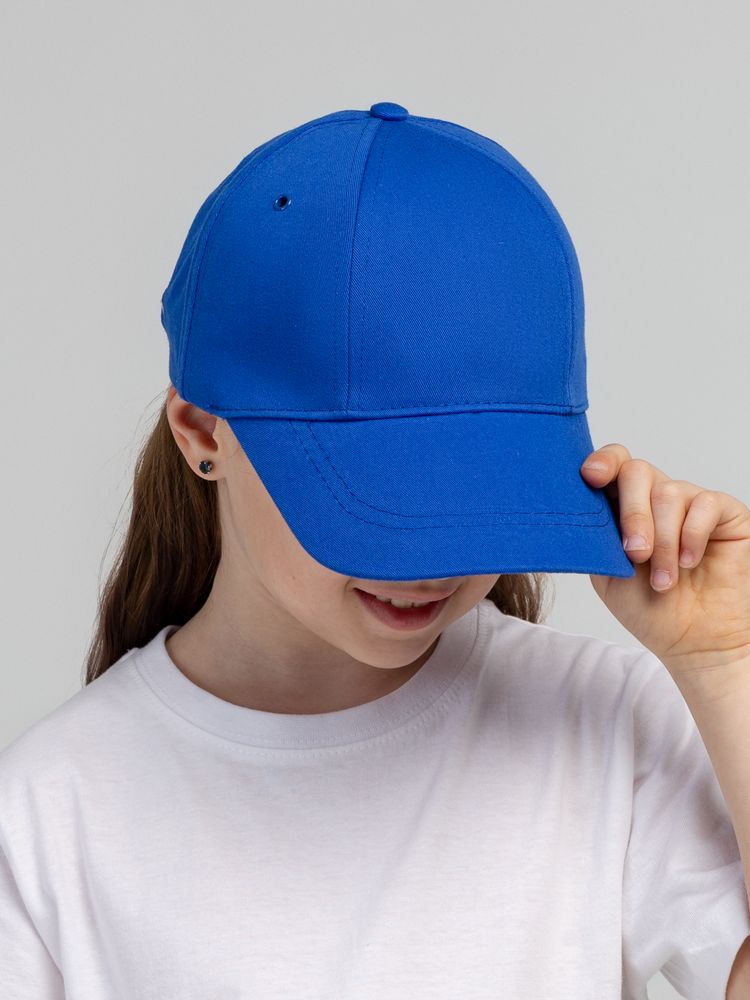 Детская модель с шестью клиньями без шва на лбу. Металлические люверсы покрашены в тон изделия. Сзади металлическая застежка для регулировки размера.