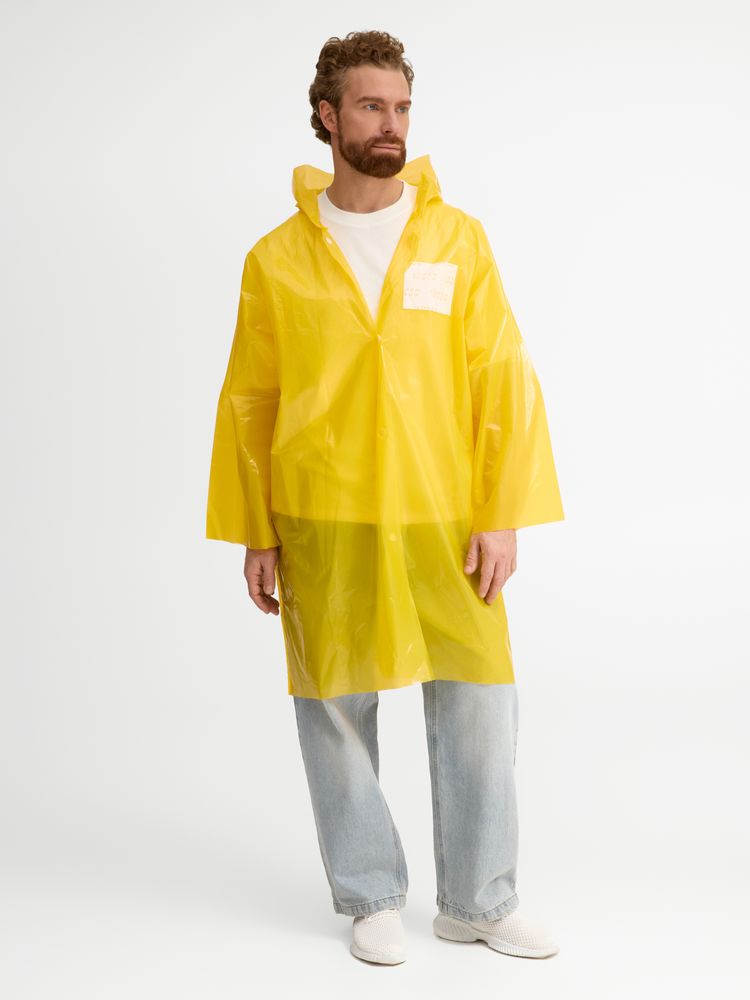 Дождевик-плащ с капюшоном и длинным рукавом из плотного полиэтилена высокого давления (ПВД).