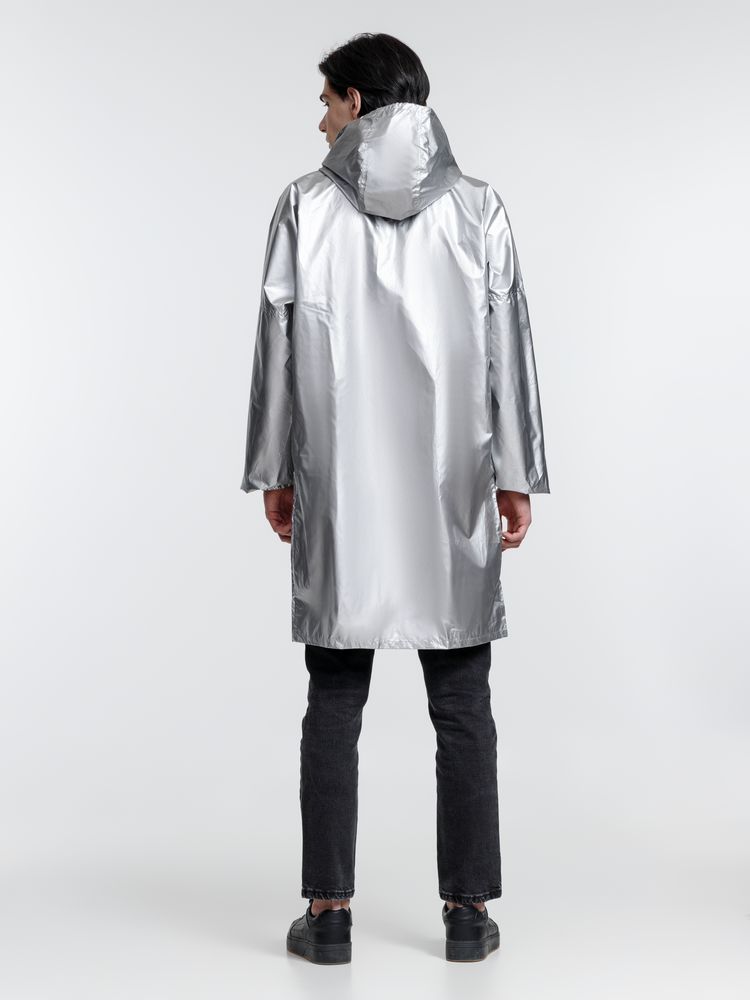 Плащ-дождевик из ткани таффета на молнии с капюшоном. Складывается в мешочек — удобно брать с собой.