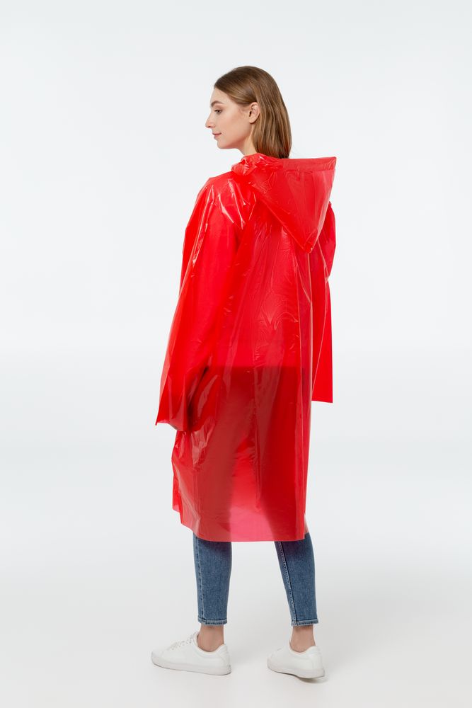Дождевик-плащ с капюшоном и длинными рукавами из полиэтилена высокого давления (ПВД).