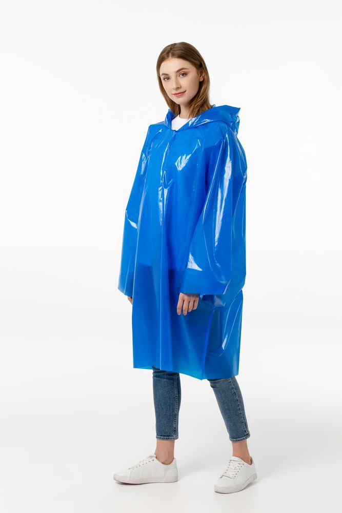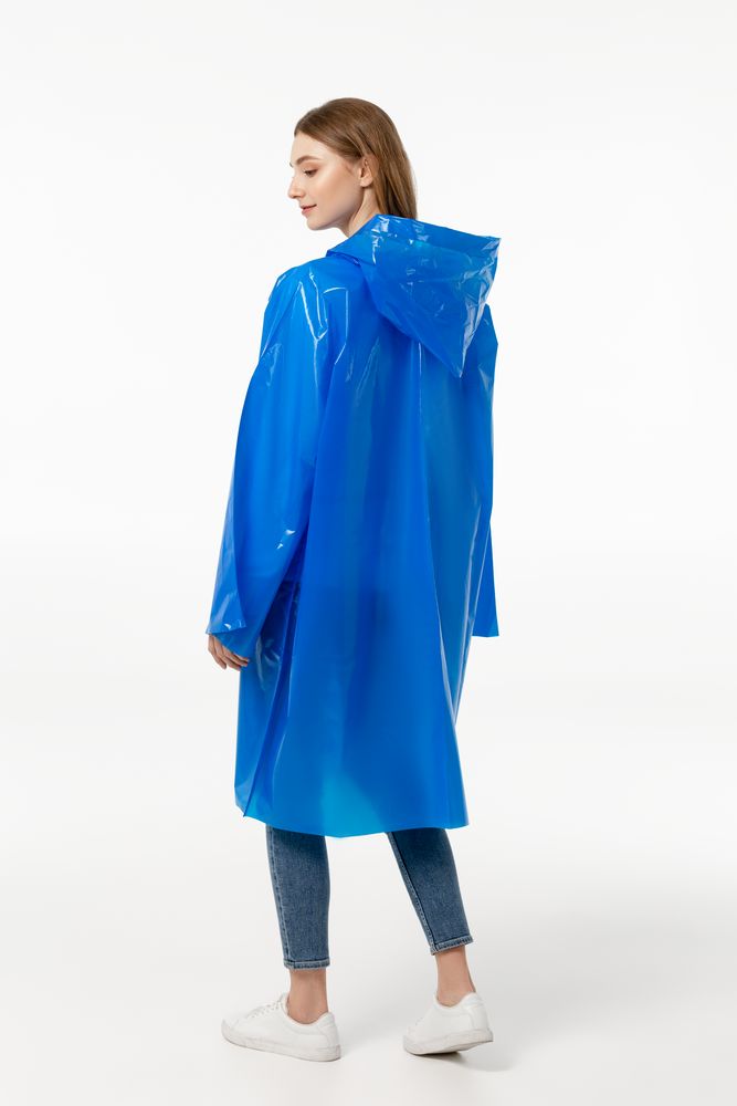 Дождевик-плащ с капюшоном и длинным рукавом из плотного полиэтилена высокого давления (ПВД).