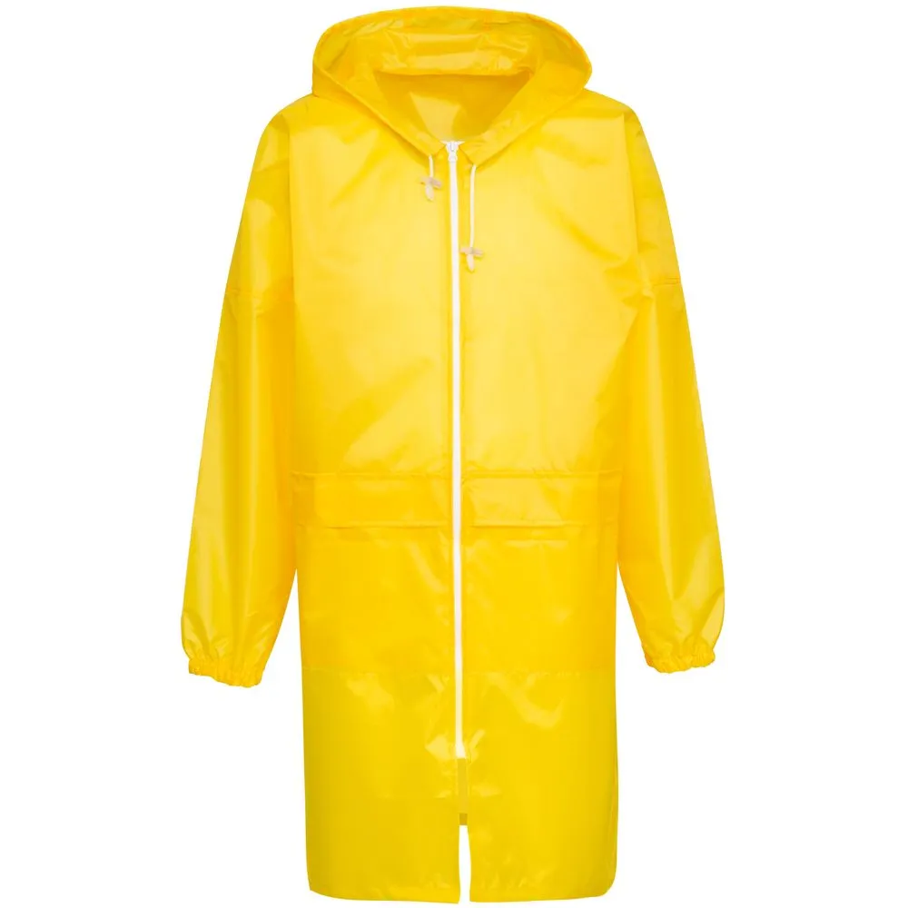 Плащ-дождевик из ткани таффета на молнии с регулируемым двухшовным капюшоном для защиты от дождя и ветра.
