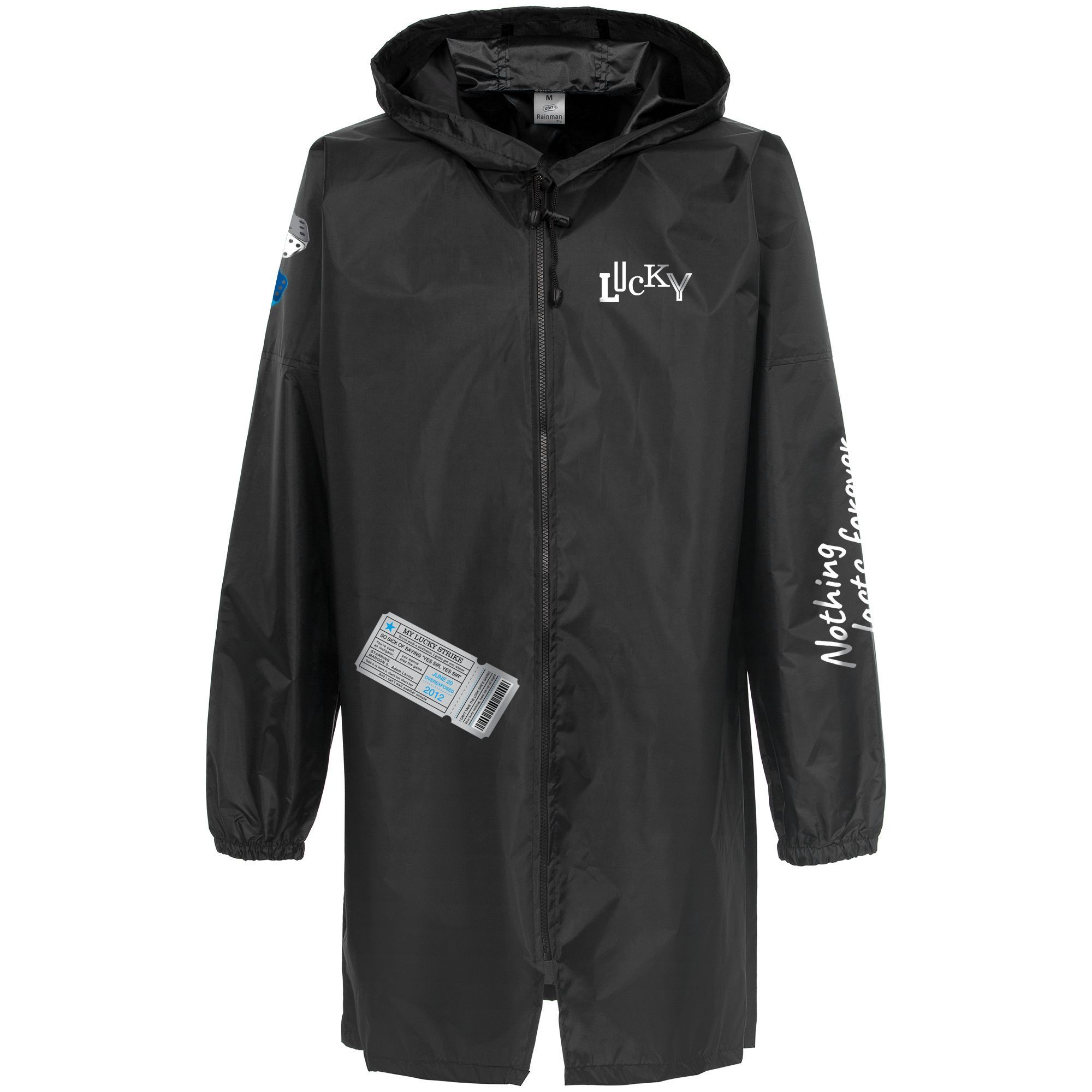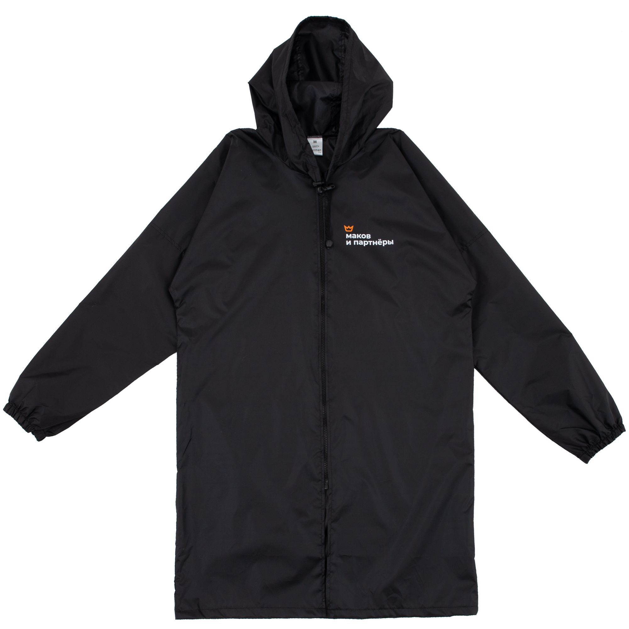 Плащ-дождевик из ткани таффета на молнии с капюшоном. Складывается в мешочек — удобно брать с собой.