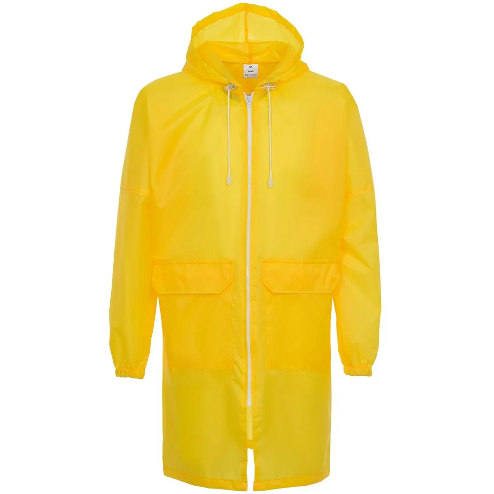 Плащ-дождевик на молнии с капюшоном и накладными карманами. Складывается в мешочек — удобно брать с собой.