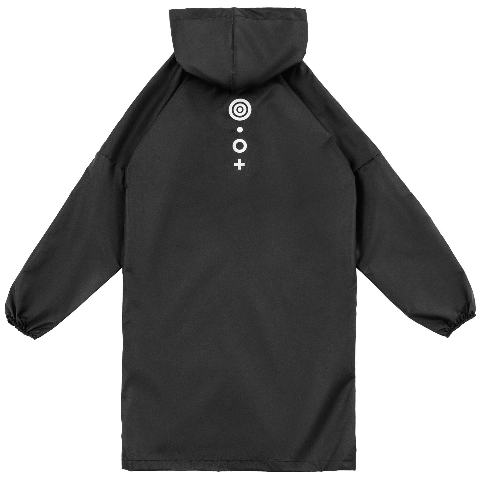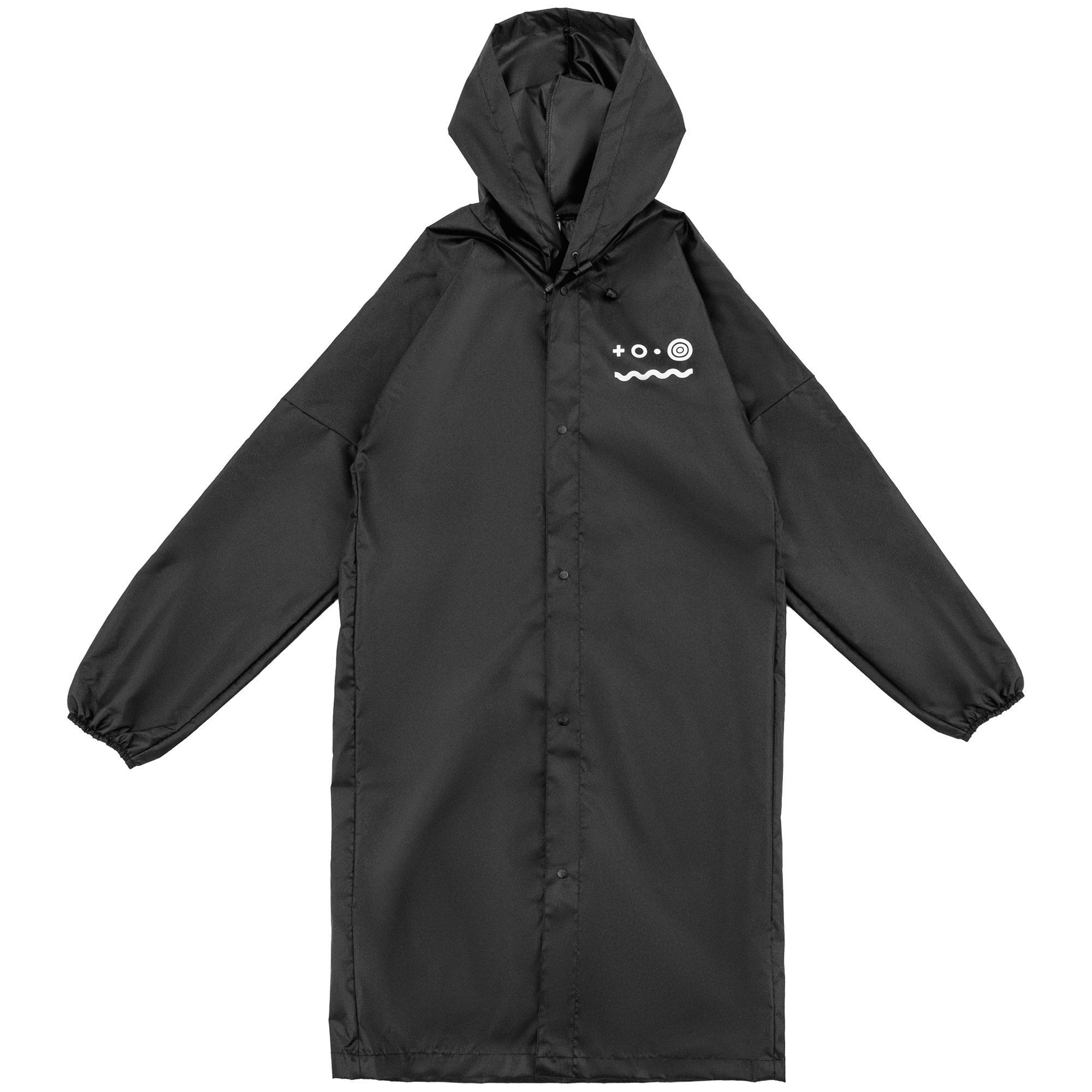 Плащ-дождевик из ткани оксфорд на кнопках с капюшоном.