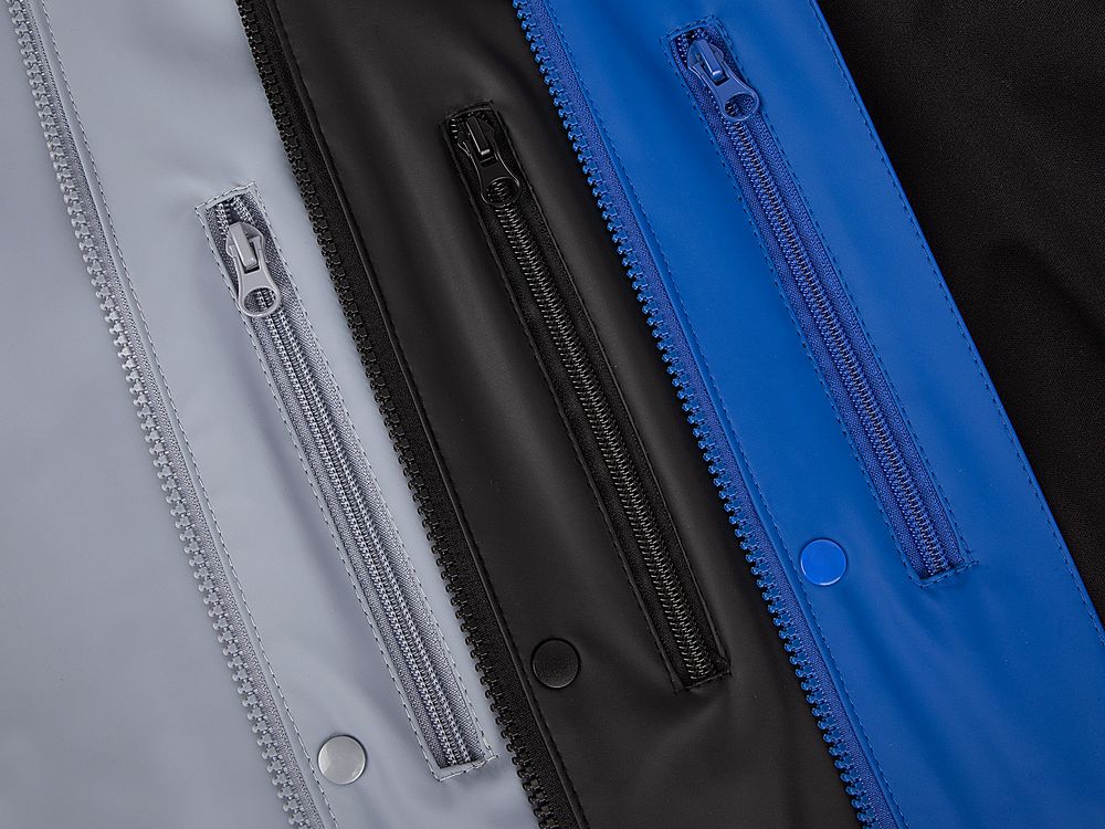 • Абсолютно водостойкие швы благодаря методу спаивания деталей кроя позволяют использовать дождевик даже в шторм