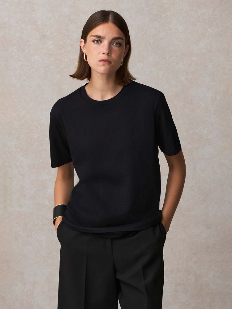 Благодаря идеальным пропорциям гребенного хлопка и переработанного полиэстера в составе, а также дополнительным обработкам ее полотно обладает повышенной мягкостью, шелковистостью и очень приятно на ощупь. Кроме того, футболка меньше мнется, не теряет форму после стирок и обладает высоким показателем Qmax — коэффициента мгновенной теплопроводности, который показывает, как быстро ткань забирает тепло от кожи. Именно он обеспечивает ощутимый эффект свежести и прохлады при первом прикосновении к ткани.