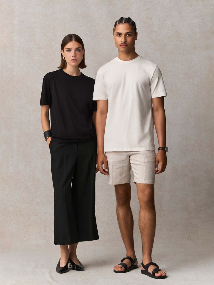 Благодаря идеальным пропорциям гребенного хлопка и переработанного полиэстера в составе, а также дополнительным обработкам ее полотно обладает повышенной мягкостью, шелковистостью и очень приятно на ощупь. Кроме того, футболка меньше мнется, не теряет форму после стирок и обладает высоким показателем Qmax — коэффициента мгновенной теплопроводности, который показывает, как быстро ткань забирает тепло от кожи. Именно он обеспечивает ощутимый эффект свежести и прохлады при первом прикосновении к ткани.