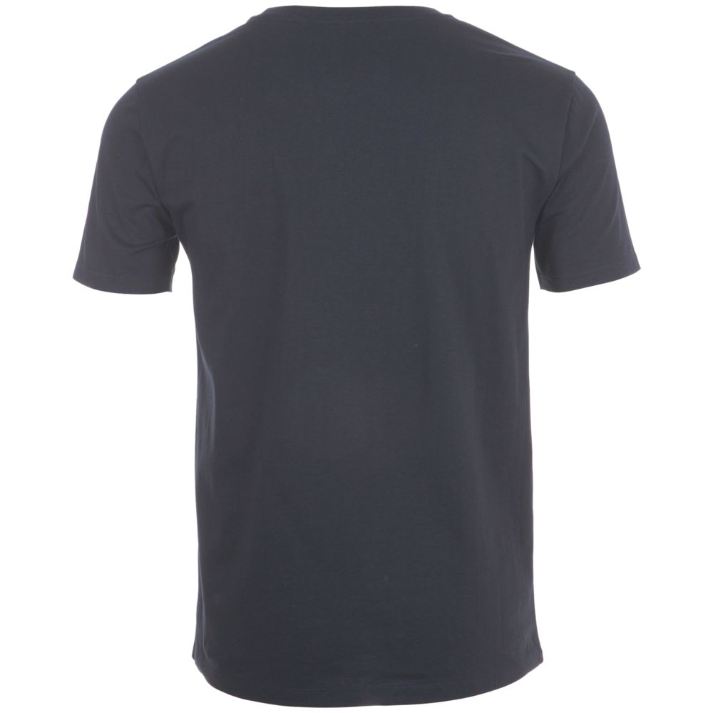 Кроеная мужская футболка с круглой горловиной. Ворот в тонкую резинку с укрепляющей тесьмой. Облегающий силуэт.