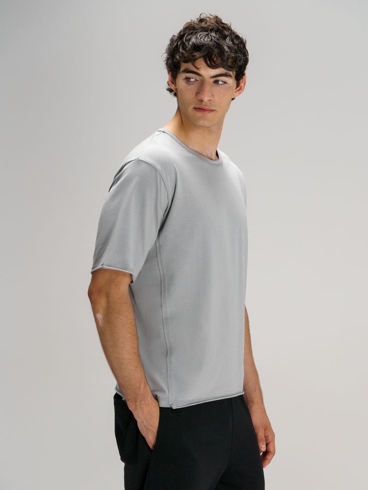 Футболка унисекс свободной посадки Vozduh создана для тех, кто следит за трендами и ценит комфорт. Необработанные края рукавов и низа изделия добавляют ему оригинальности и легкой небрежности, а боковые вставки создают притягательный летящий силуэт.