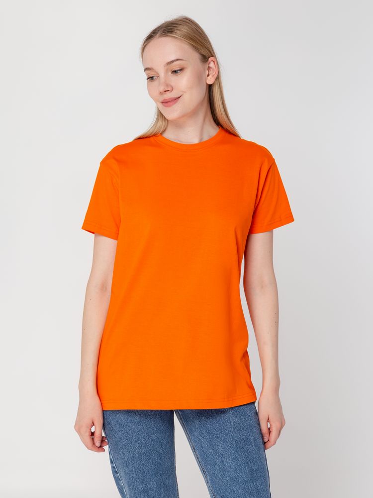 Базовая футболка унисекс прямого силуэта без боковых швов (размеры XS–4XL) или с боковыми швами (размеры 5XL–6XL).