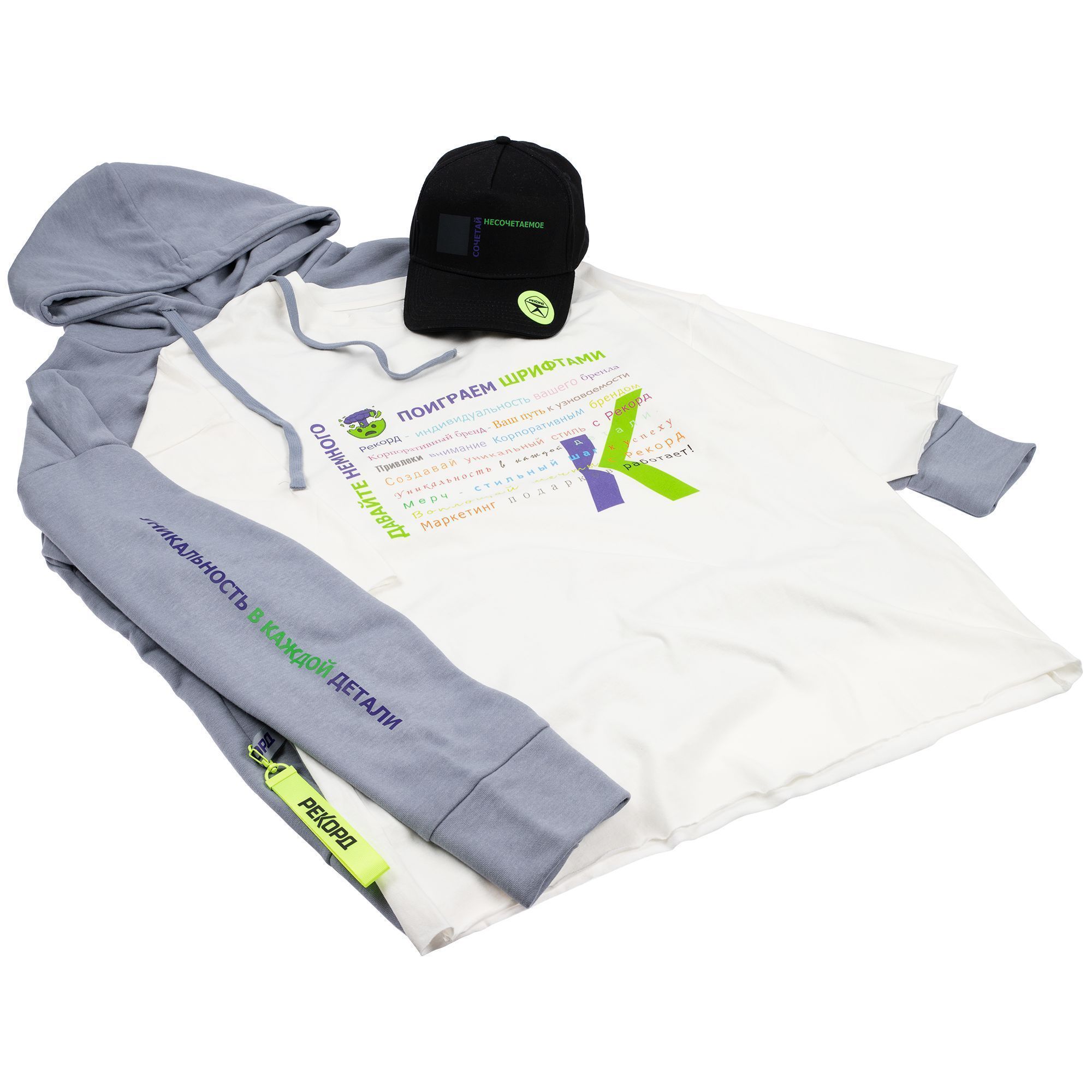 Базовая повседневная одежда актуального покроя в стиле унисекс разработана в рамках единой коллекции и легко собирается в комплекты. Специально спроектированные лекала и технологии пошива открывают простор для любых вариантов кастомизации и нанесения изображений. На видимой части изделий нет лейблов с айдентикой бренда, а название бренда с уходника легко удалить.