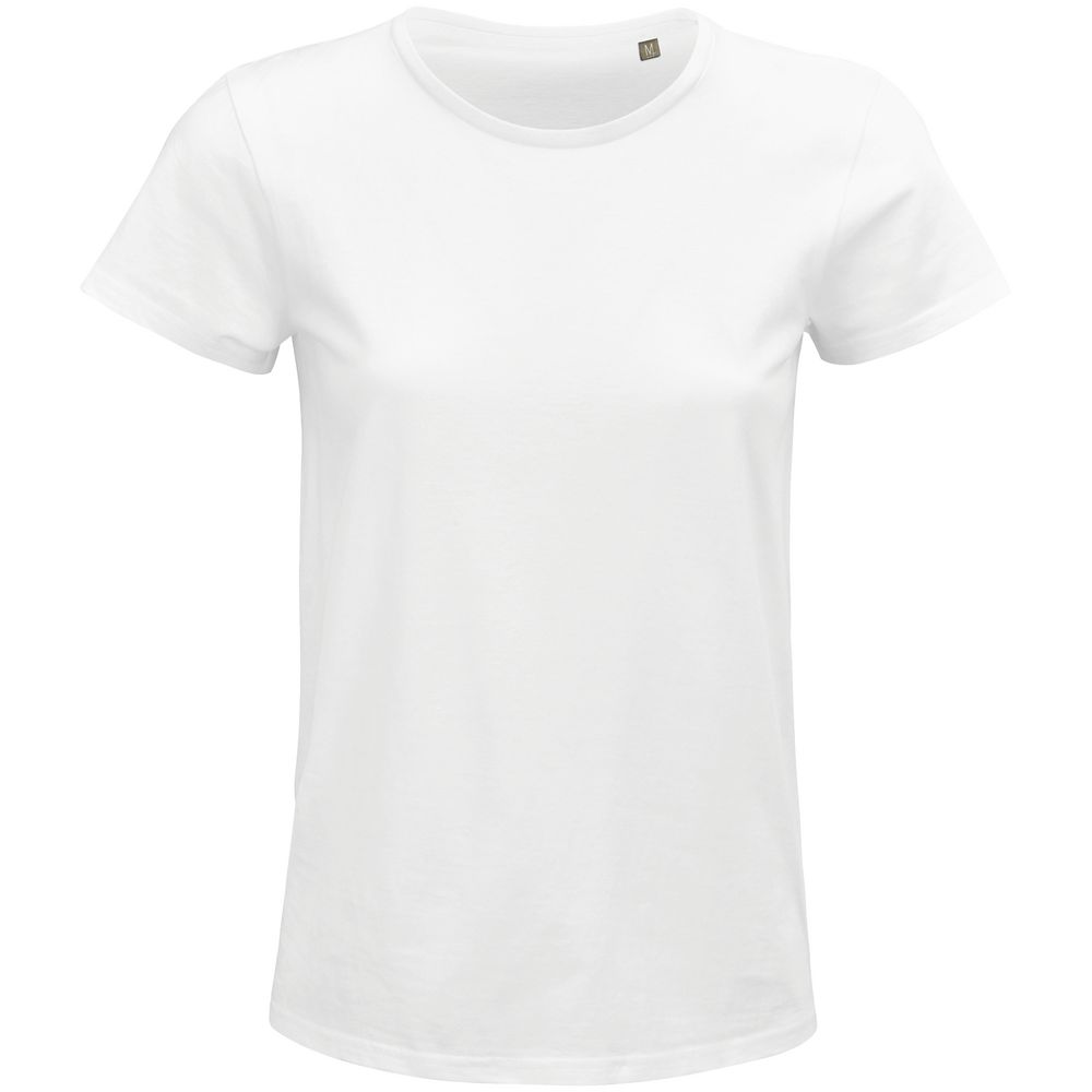 Женская бесшовная облегающая футболка из органического хлопка с круглым вырезом.
