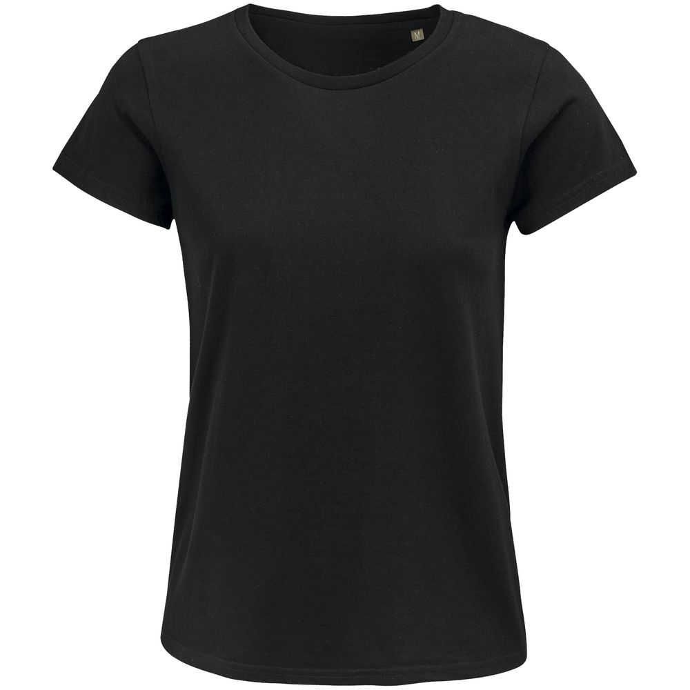 Женская бесшовная облегающая футболка из органического хлопка с круглым вырезом.