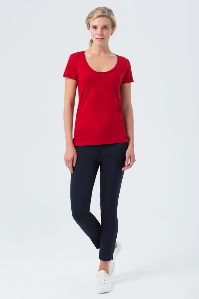 Воротник выполнен резинкой 1х1 с эластаном. Укрепляющая тесьма по вороту.