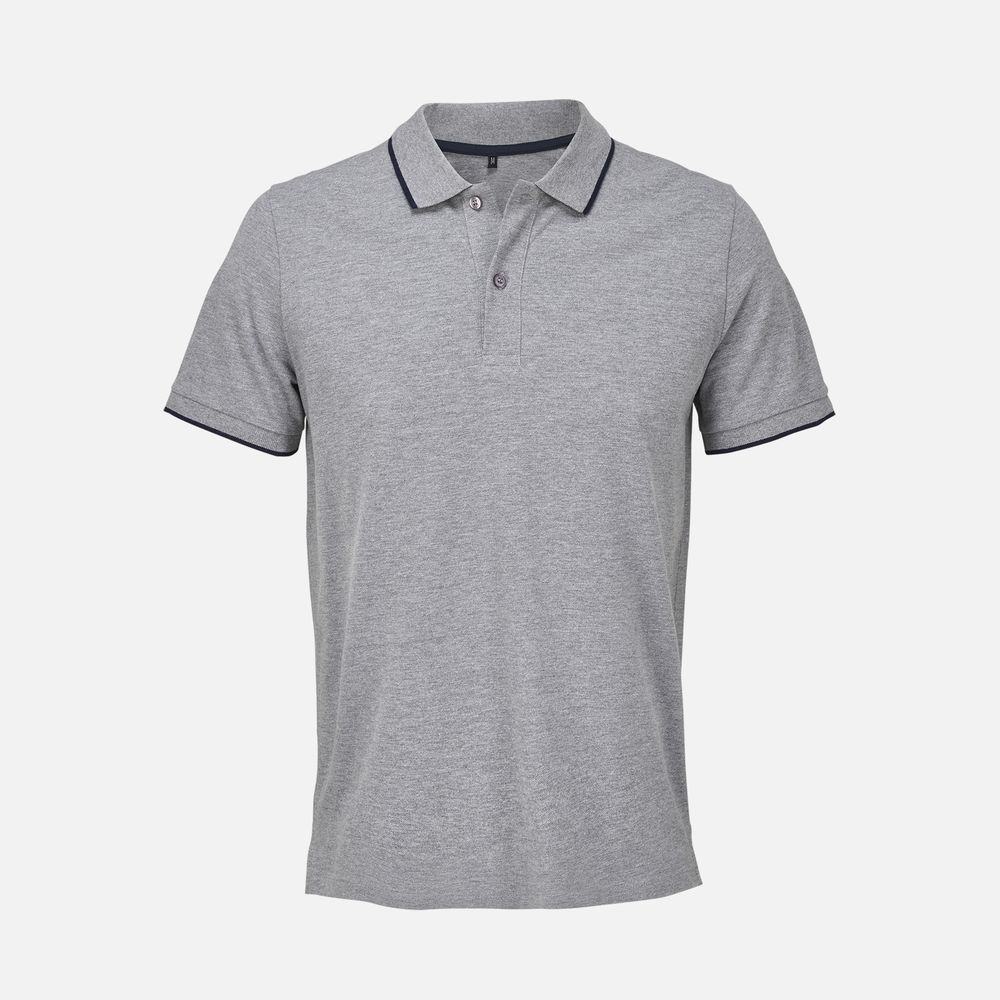 Рубашка поло унисекс Palermo, серый меланж с темно-синим с логотипом